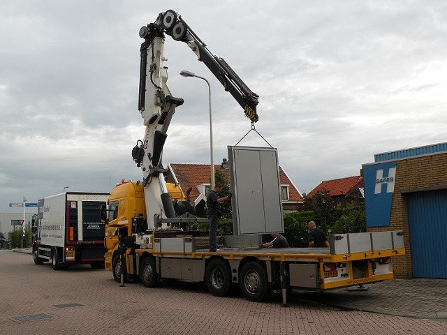 Wanneer een kluis op de eerste etage moet worden geplaatst, maakt Van den Hoven gebruik van een trapklimmer. Is de trap niet bestand tegen het gewicht van de kluis, dan kunnen wij de kluis verhuizen met behulp van een kraanwagen, waarmee we de kluis op de etage plaatsen via bijvoorbeeld een raam of balkondeur.