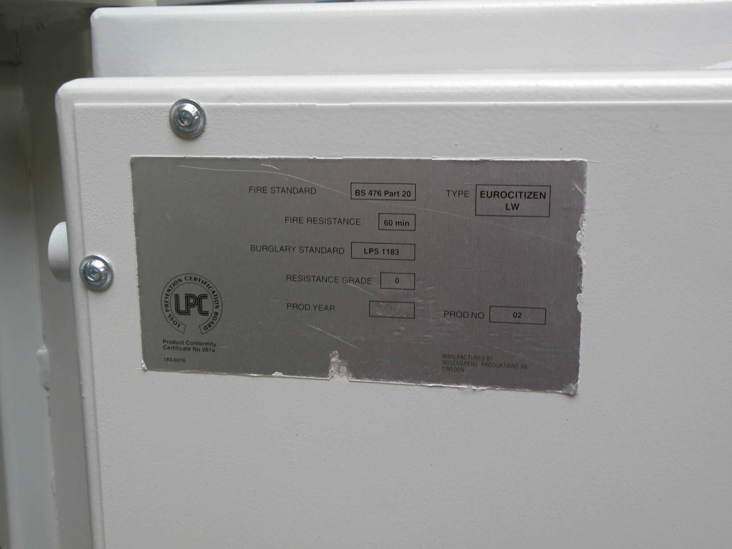 This used fire- and burglary-resistant Rosengrens safe model EuroCitezen 90 LW offers protection against fire - and burglary. Cover advice from insurers based on standardisation € 7,000, - cash. Valuables insurance € 14,000, - EN 1143-1 standardisation class 0. Fire resistance 60P - test certificate BS 476 part 20. 60 minutes fire resistance for paper at approximately 1000 degrees C. The safe is supplied....