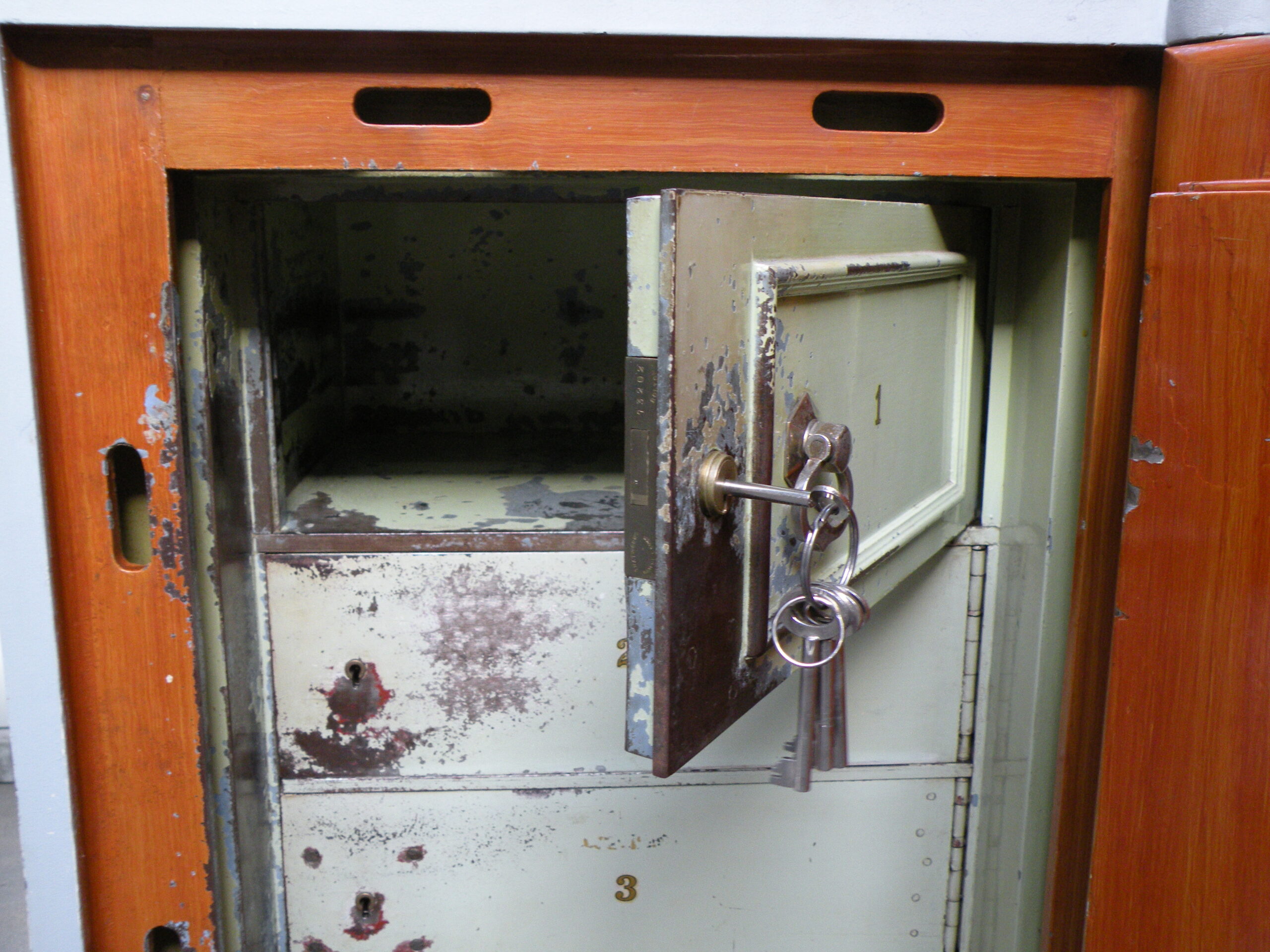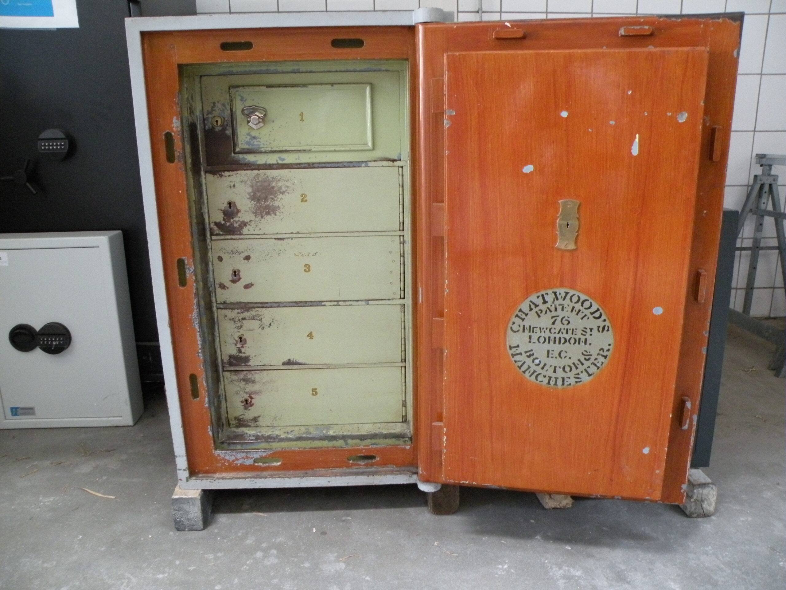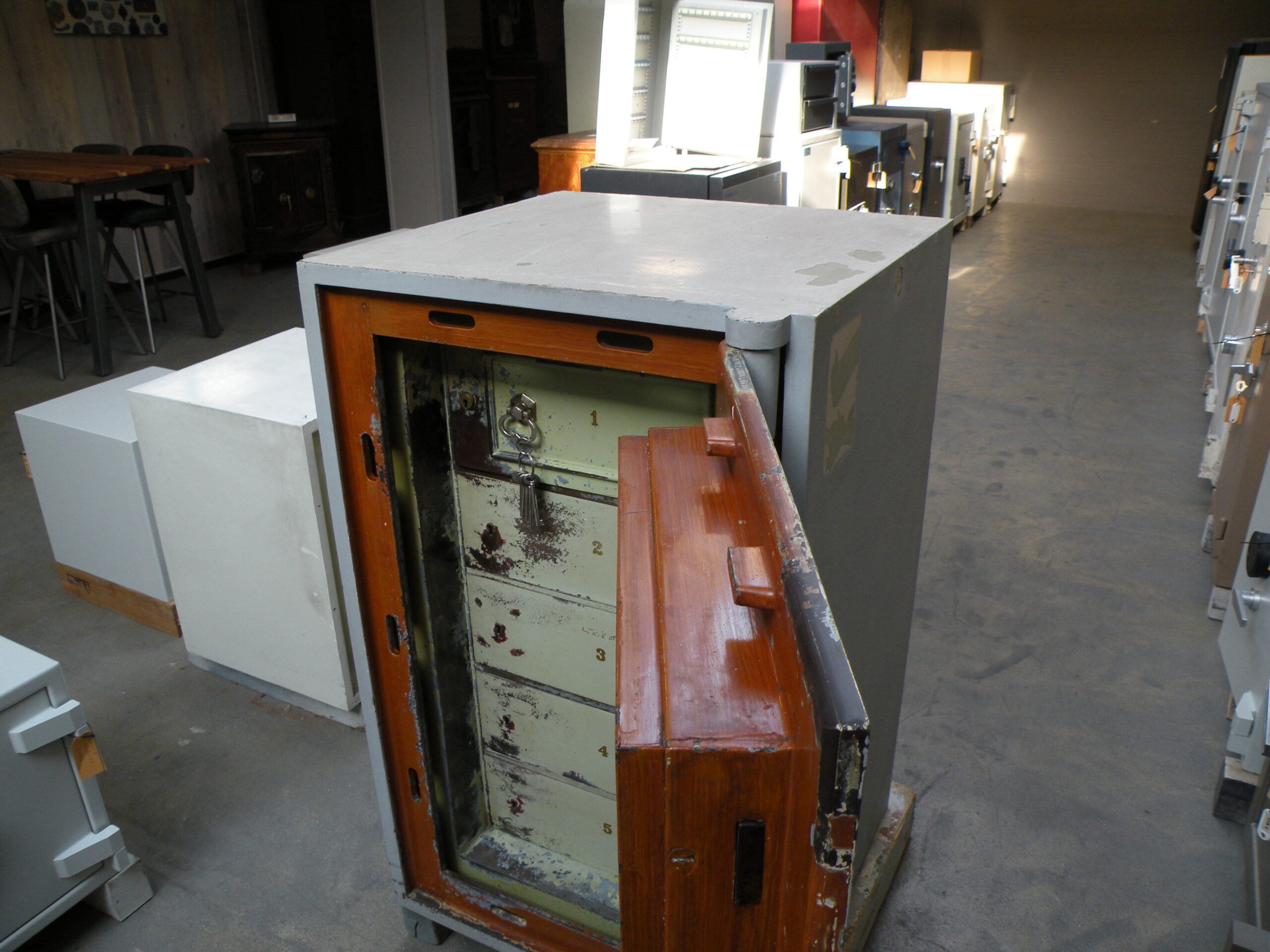 Antieke kluis uitgevoerd met 5 stuks afsluitbare binnenvakken. Brand- en inbraakwerend.