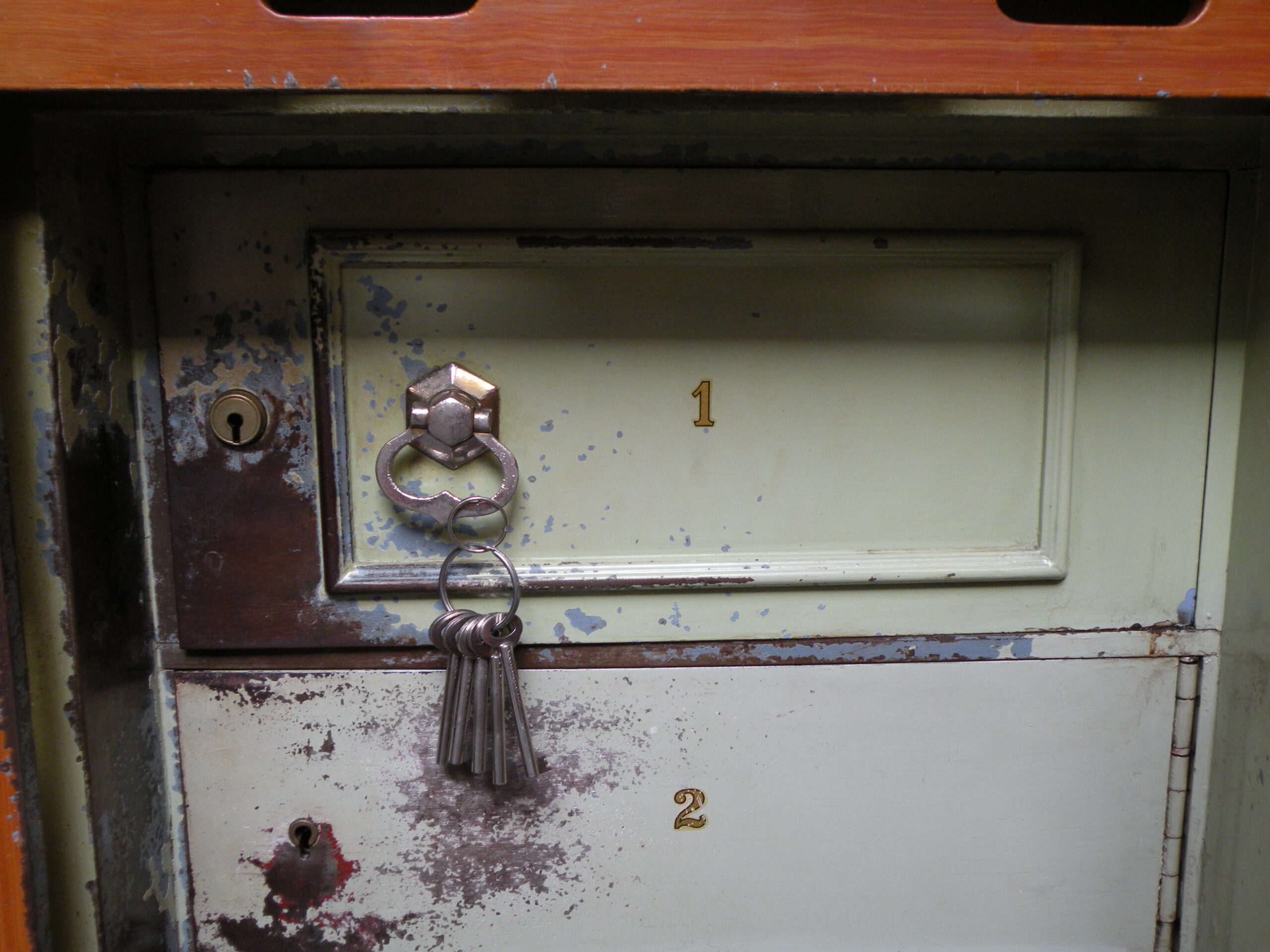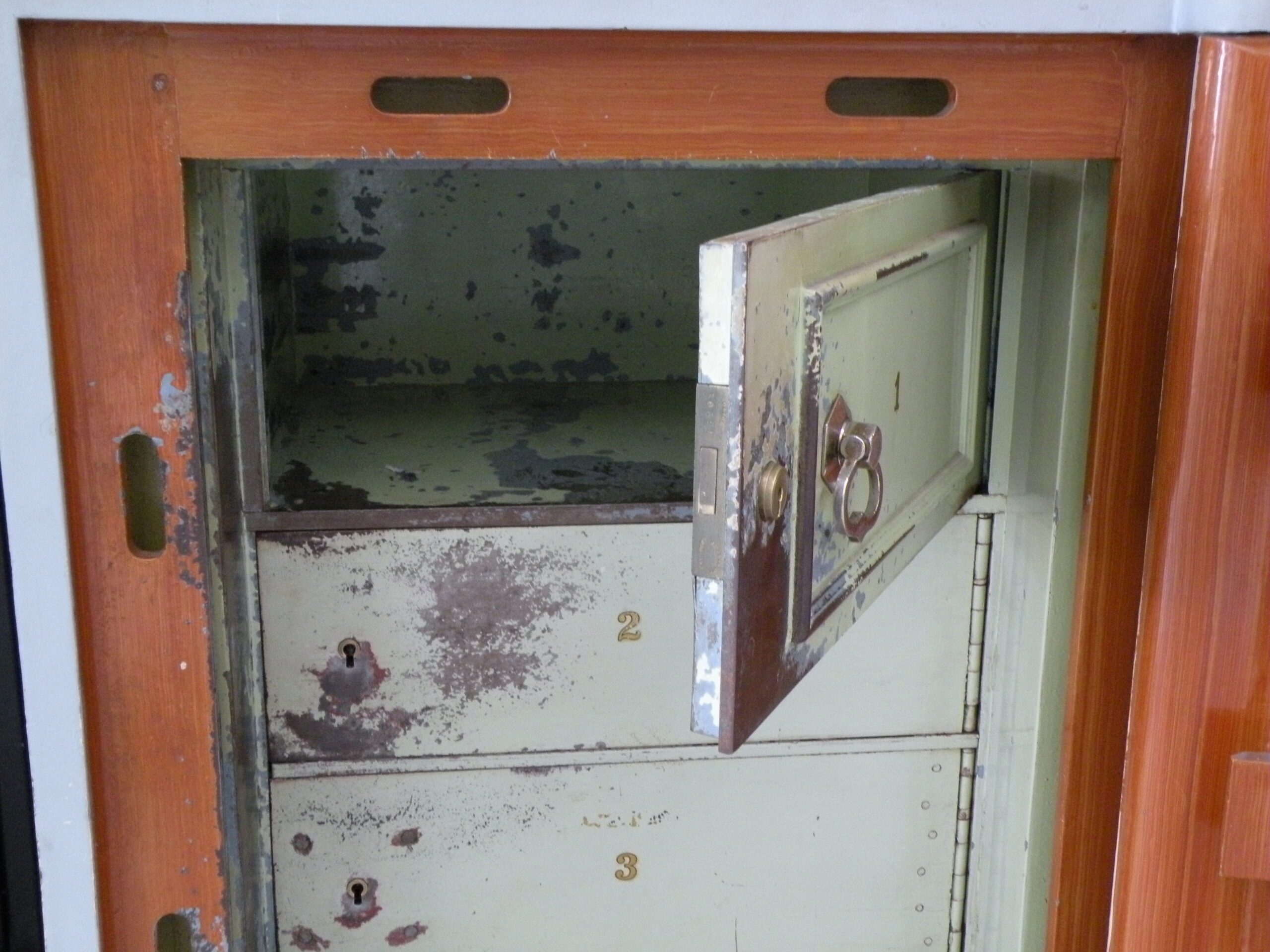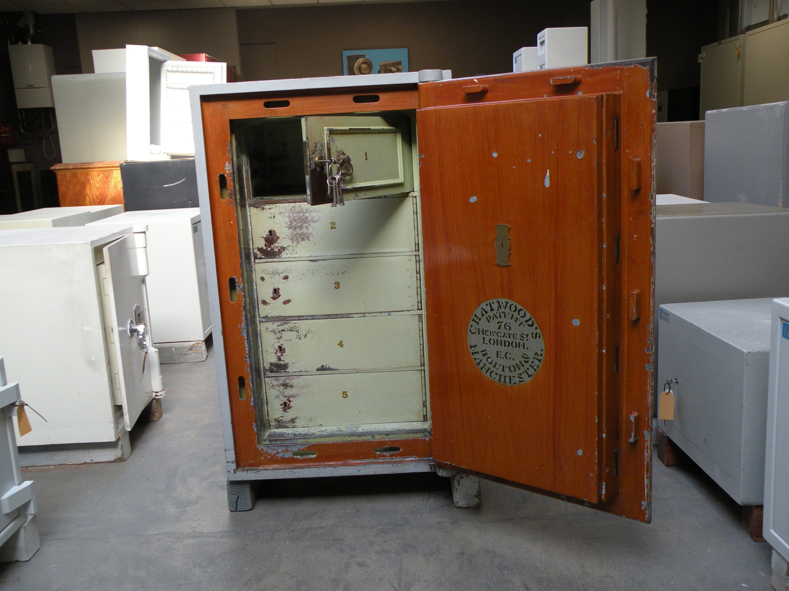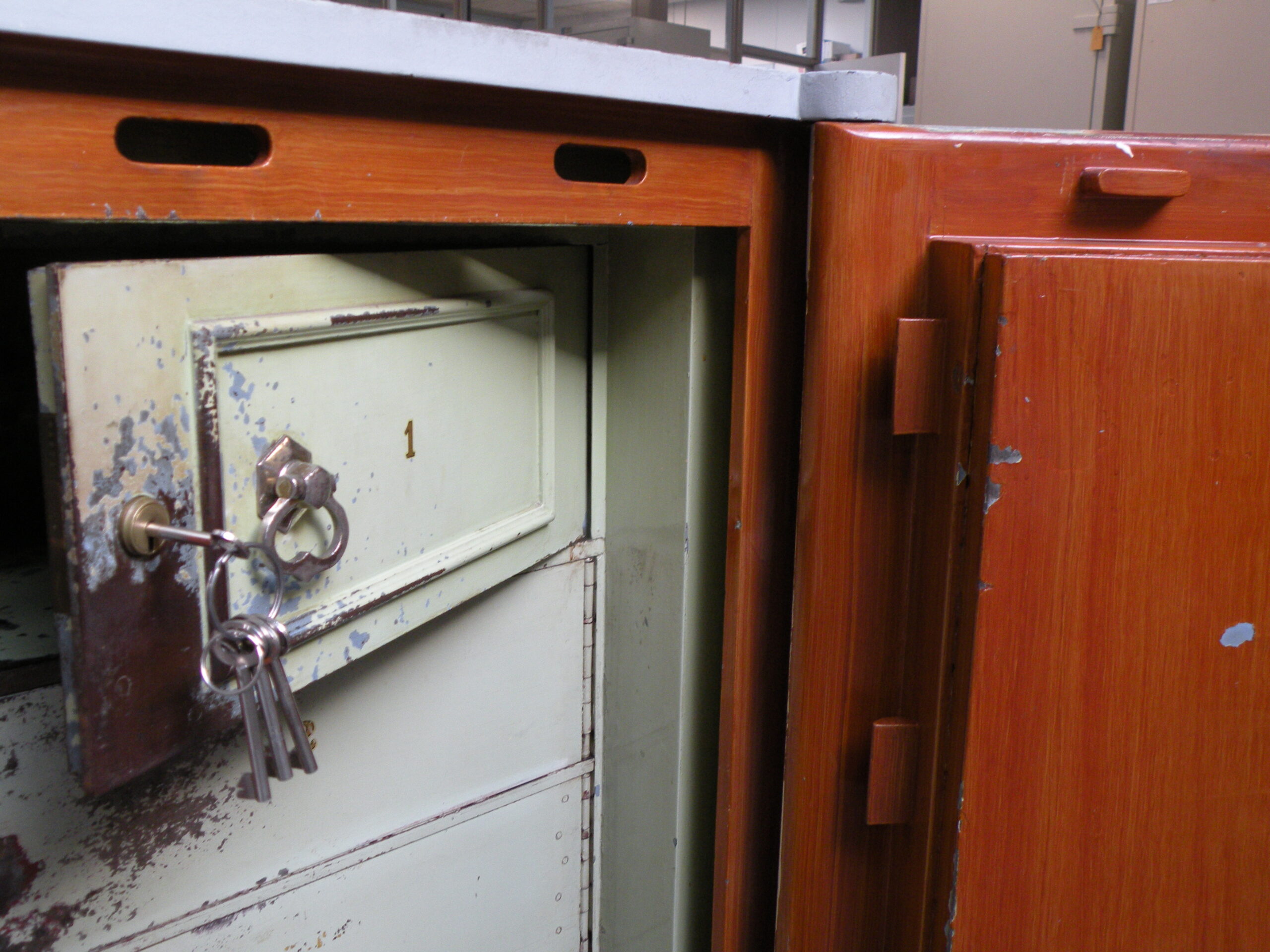 Antieke kluis uitgevoerd met 5 stuks afsluitbare binnenvakken. Brand- en inbraakwerend.