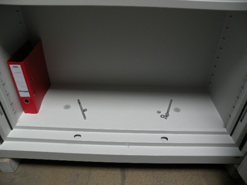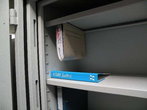 Deze kluis wordt geleverd met 4 stuks verstelbare systeemlegborden, geschikt om A4 hangmappen aan de onderzijde aan te hangen. 1 jaar garantie.
