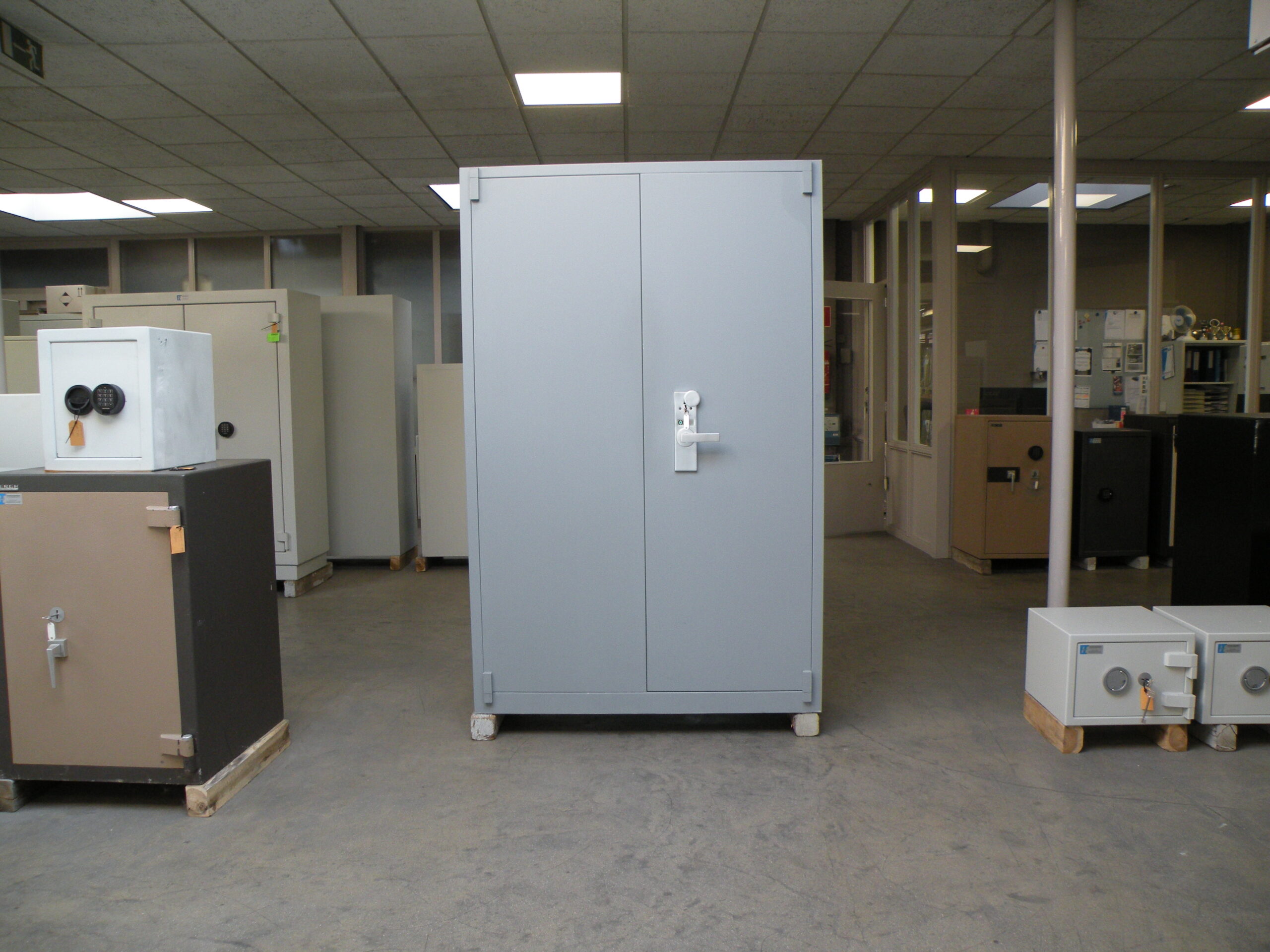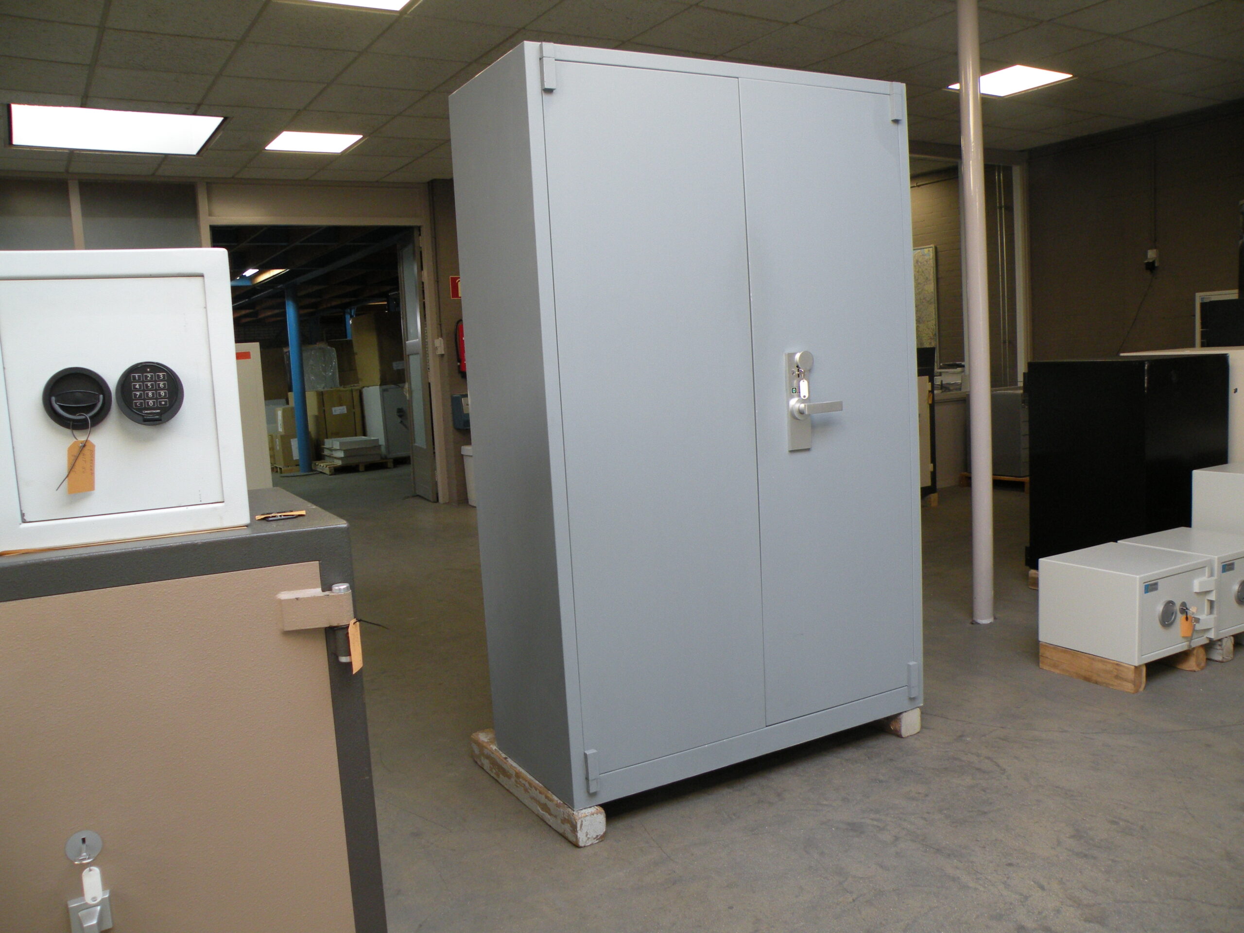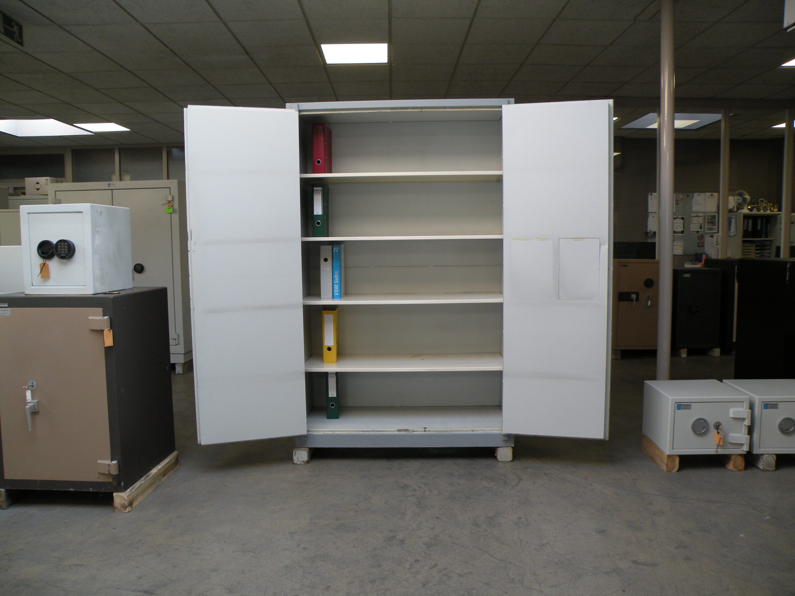 Deze gebruikte DRS brand- en inbraakwerende dubbeldeurs archiefkast model Dera 1400.