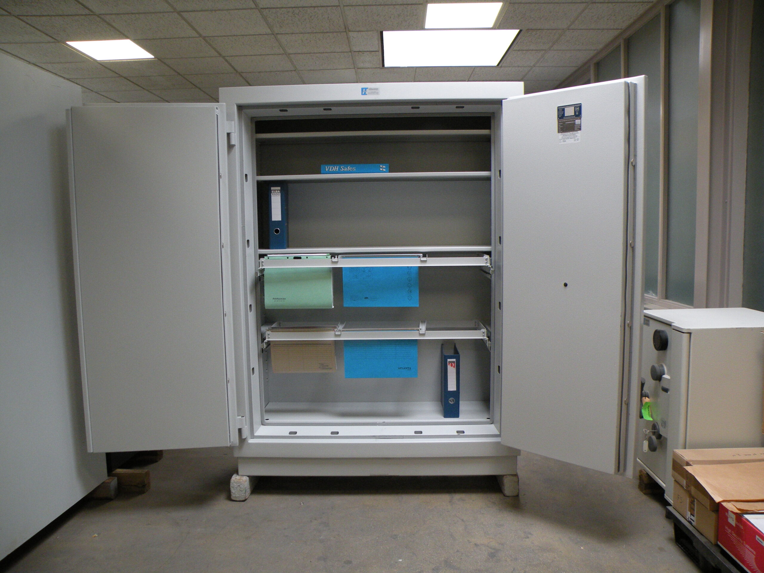 Gebruikte brandwerende kluis. Merk ISS model Hamburg 45006.