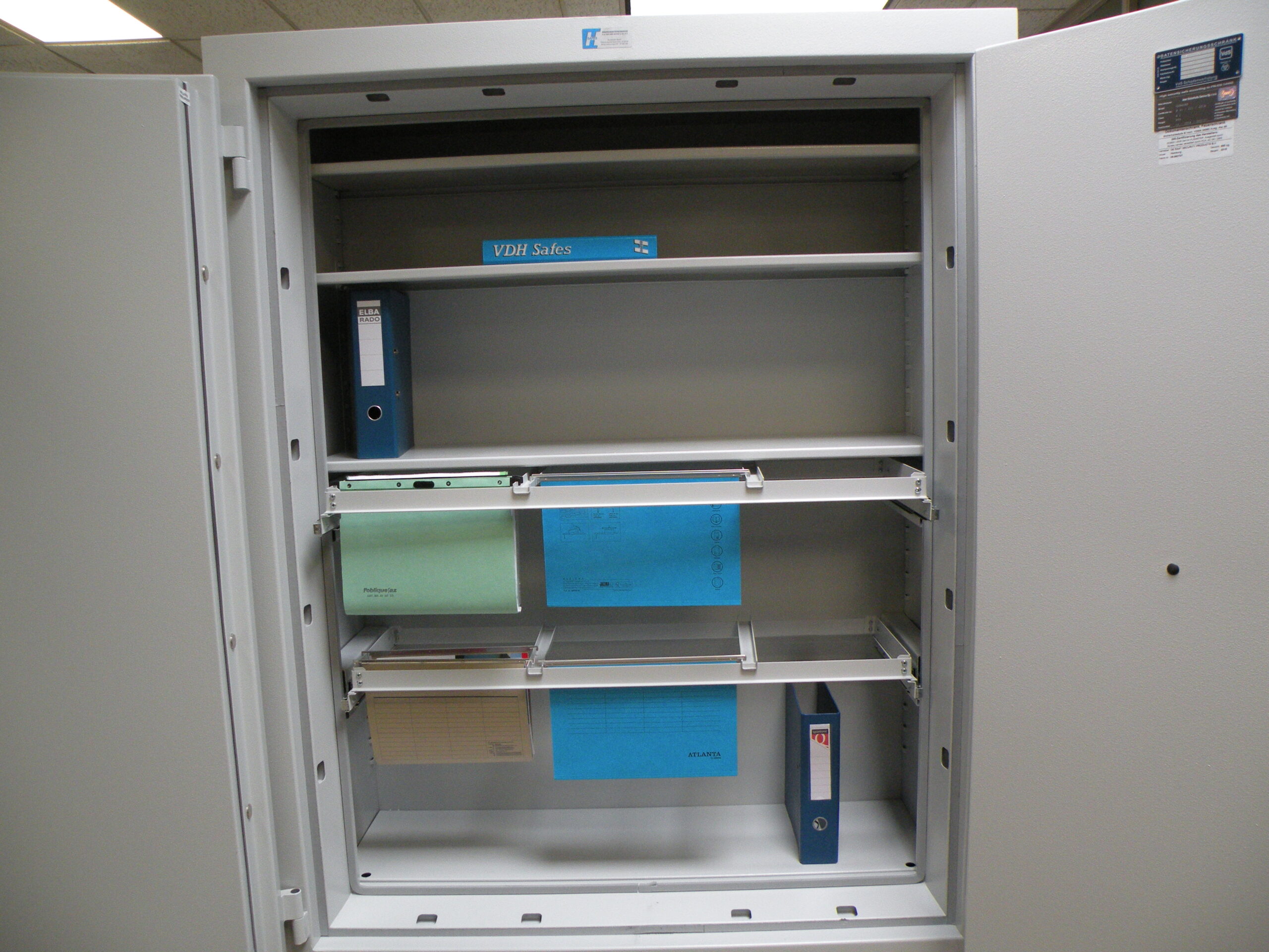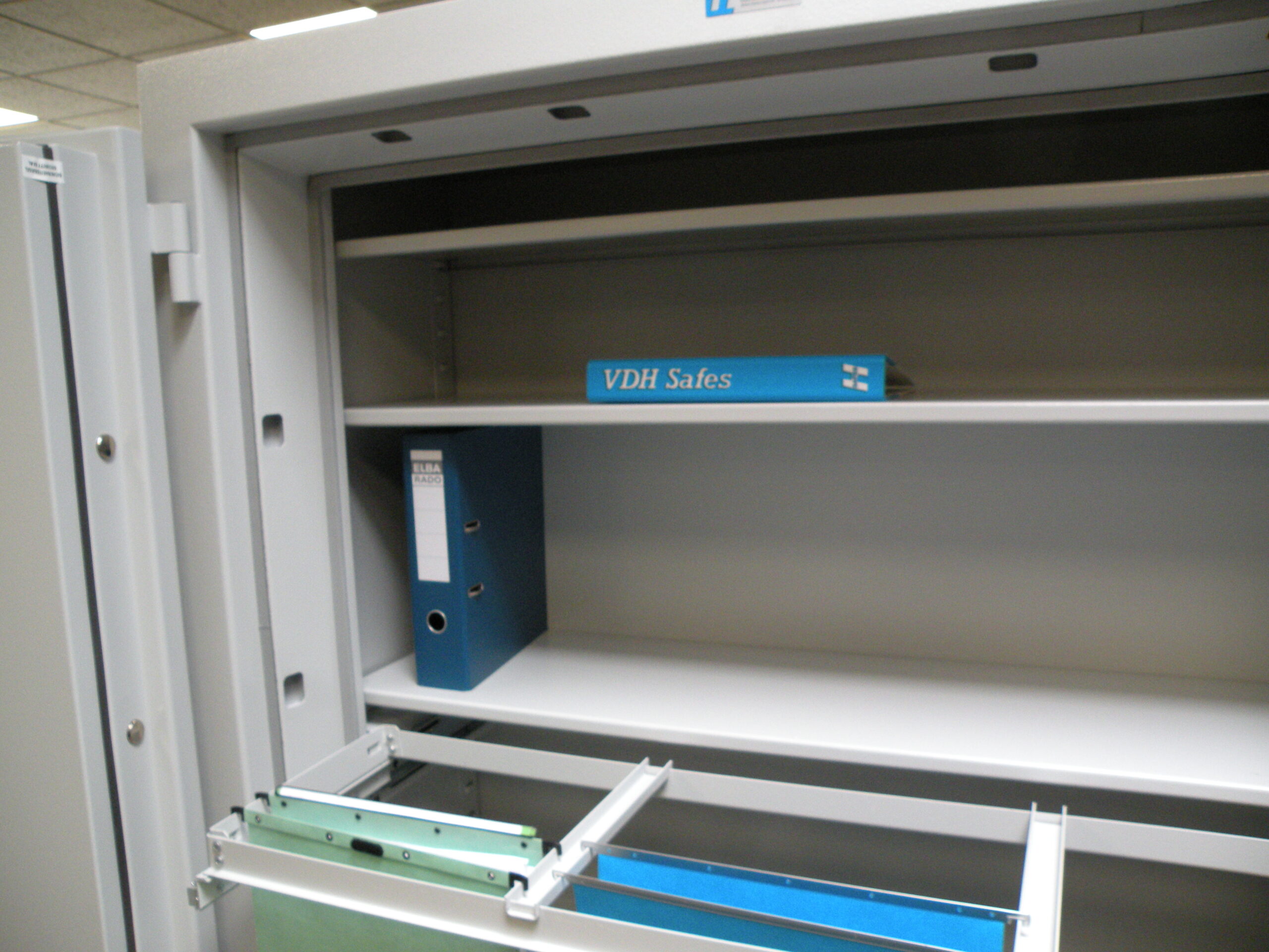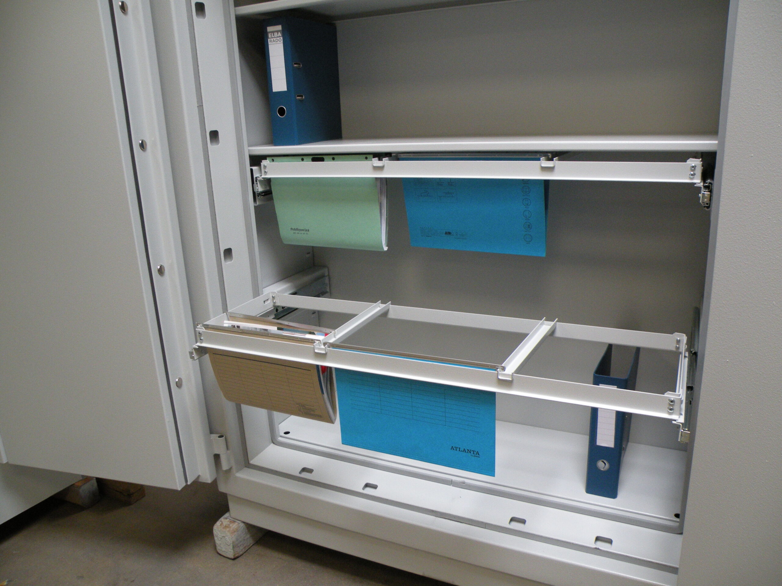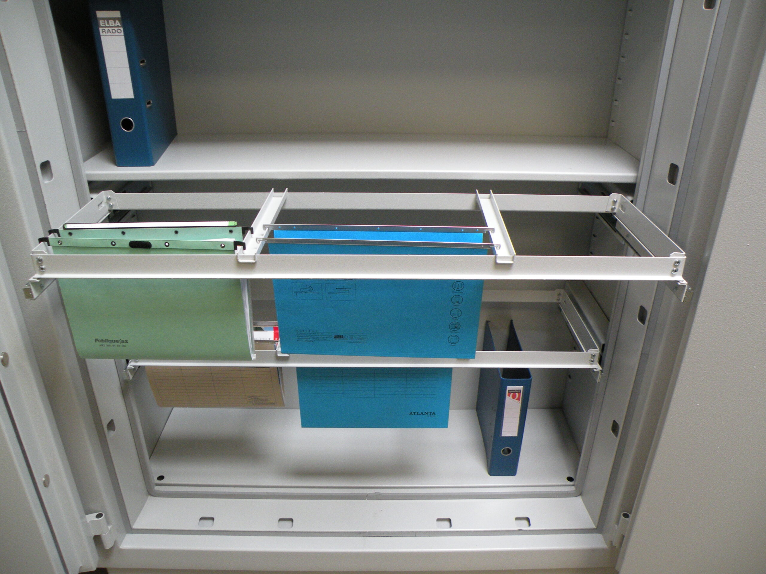 Voorzien van 4 stuks verstelbare legborden en 2 stuks uittrekbare hangmapsystemen voor het opbergen van A4 of Folio formaat.