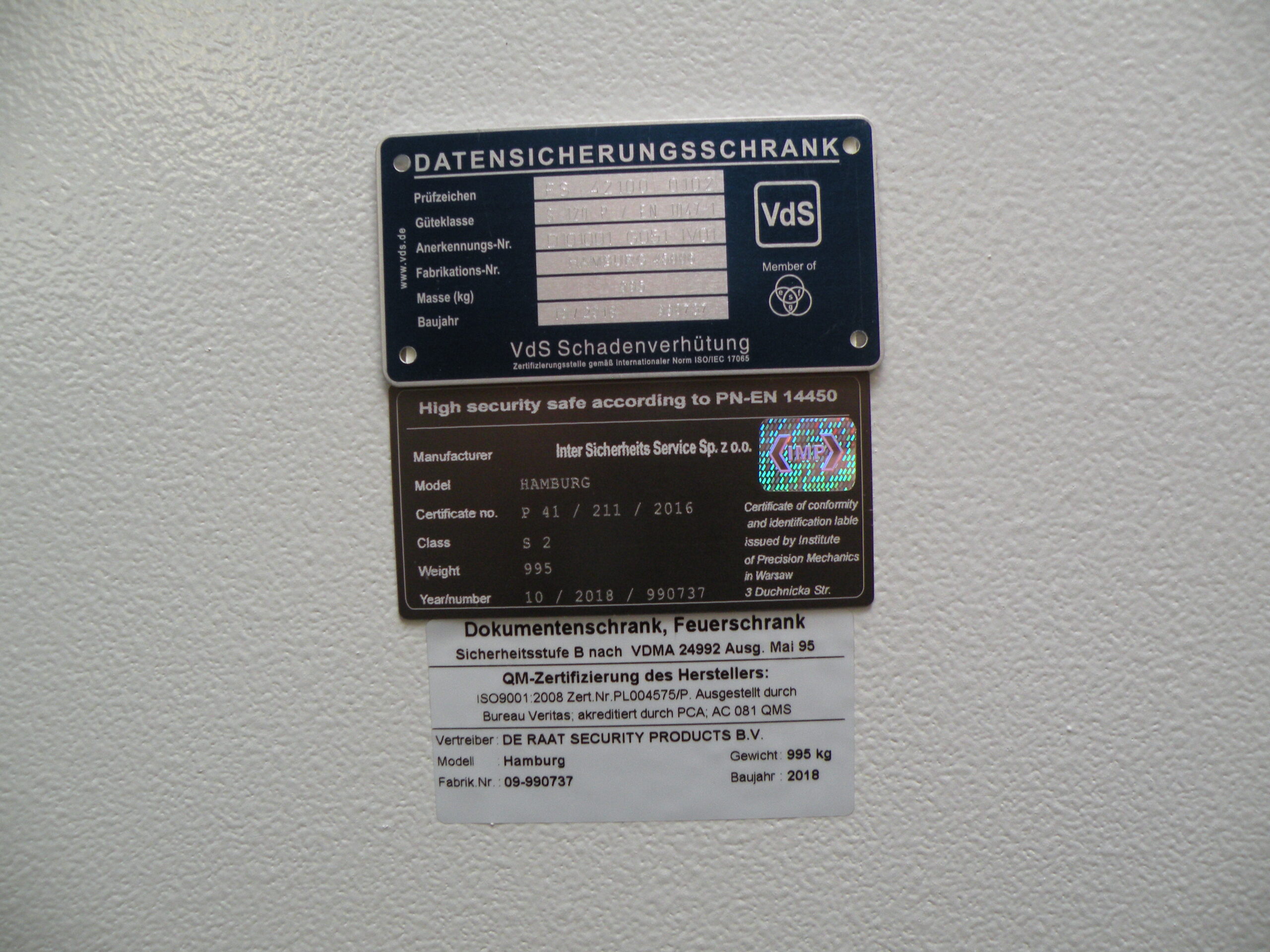 Deze kluis is getest en gecertificeerd conform de EN 14450 S2 normering. Dekkingsadvies verzekeraars op basis van normering contant geld € 5.000,00. Kostbaarhedenverzekering € 9.000,00.
