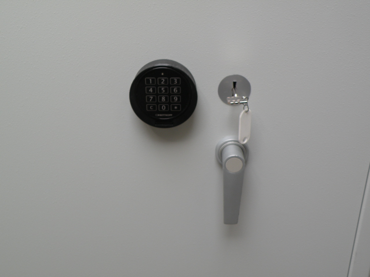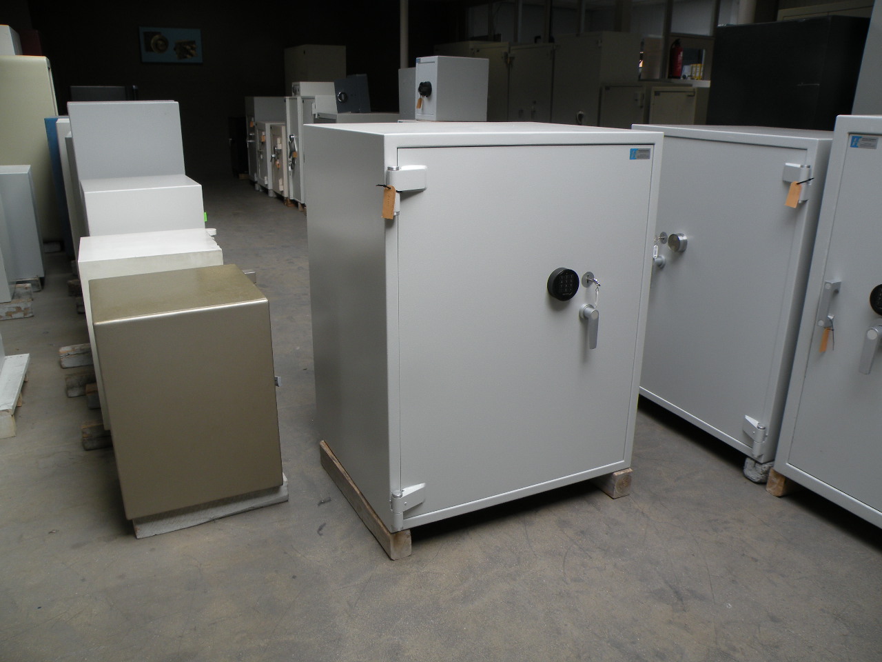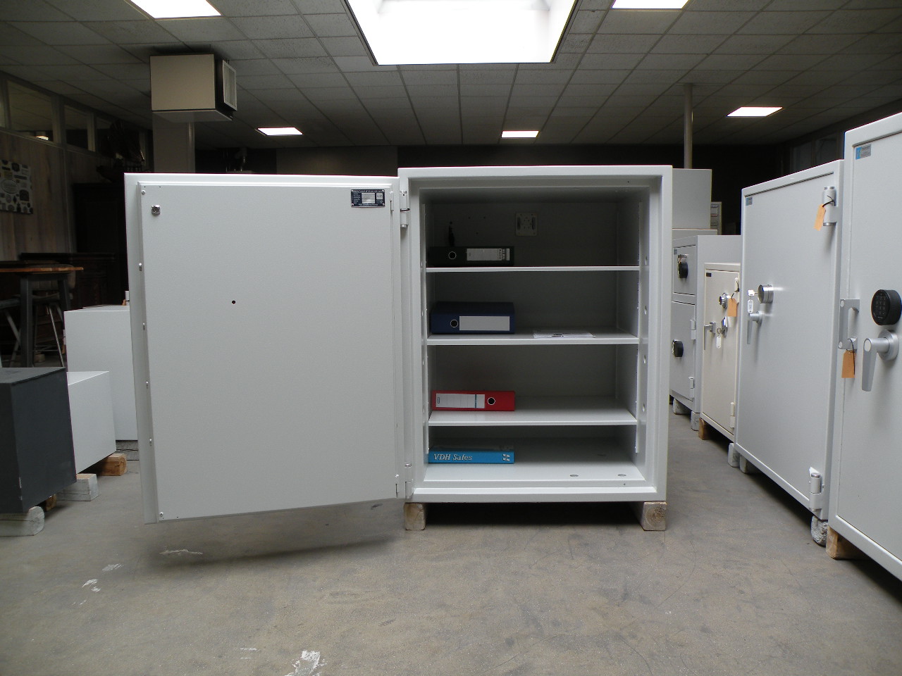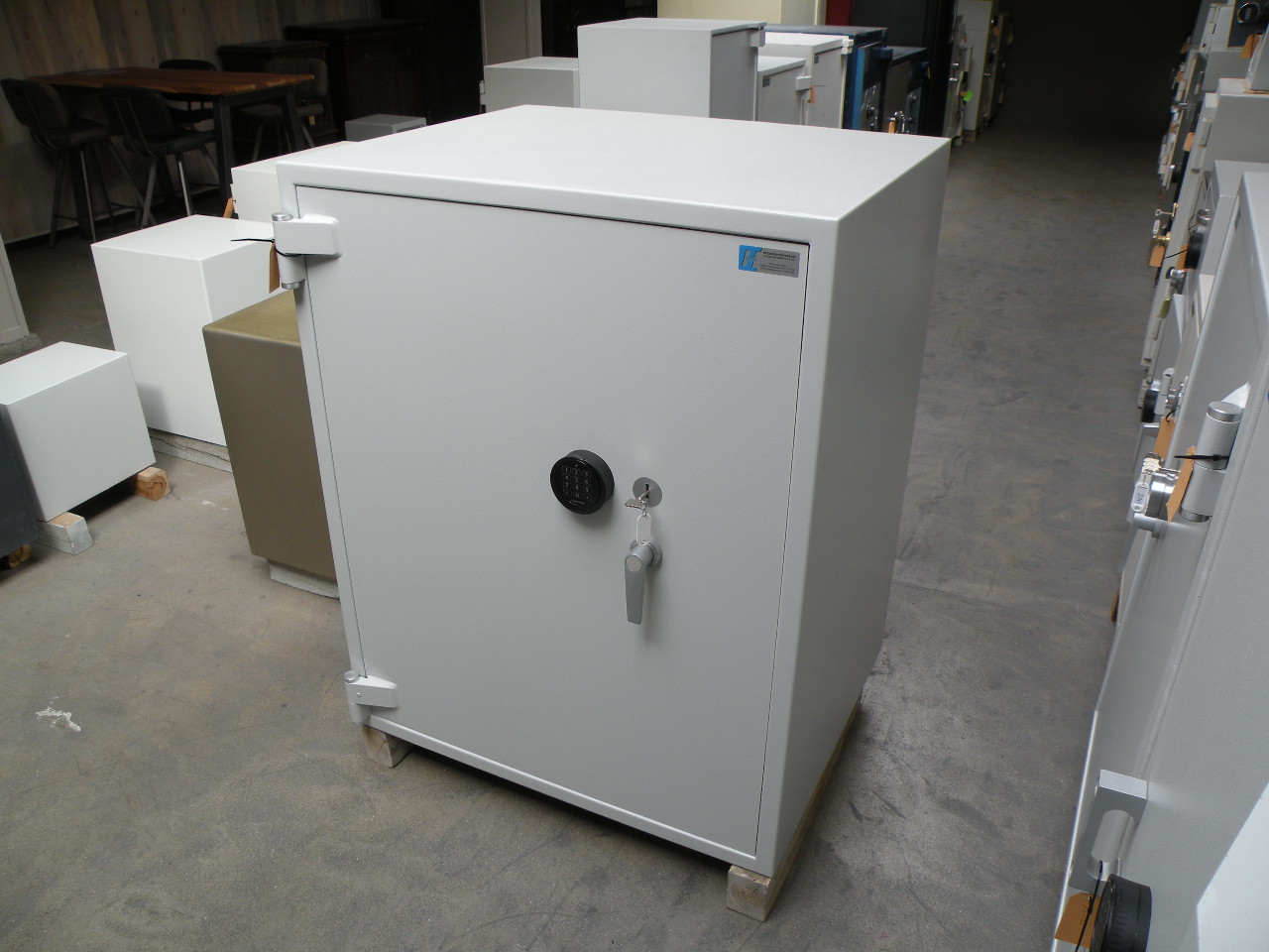 Uitgevoerd met sleutelslot inkl 2 sleutels en electronisch verstelbaar cijferslot EN 1300 klasse A.