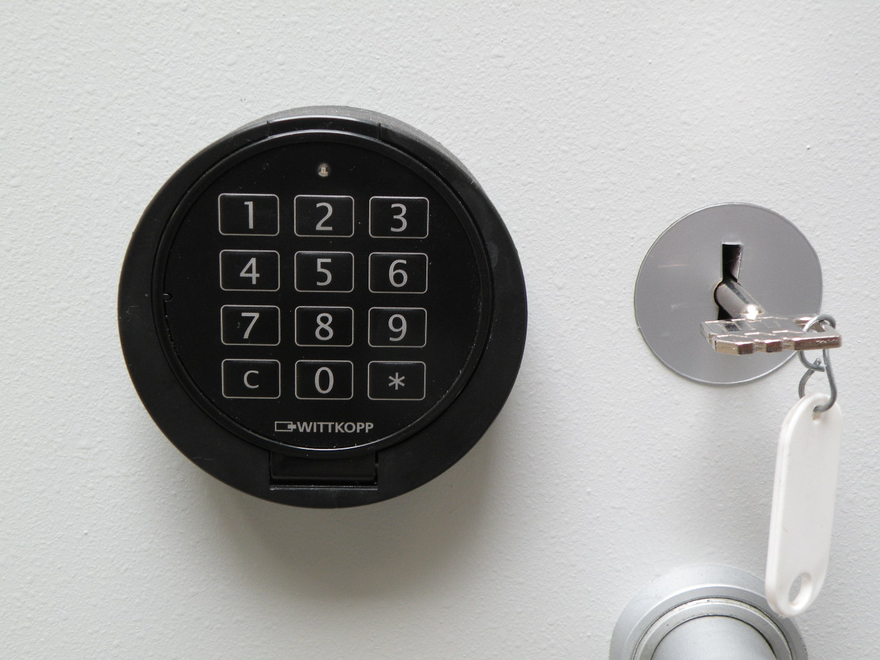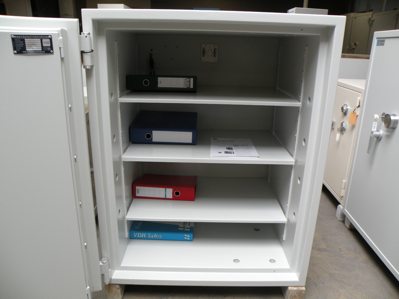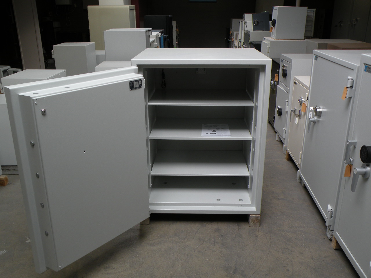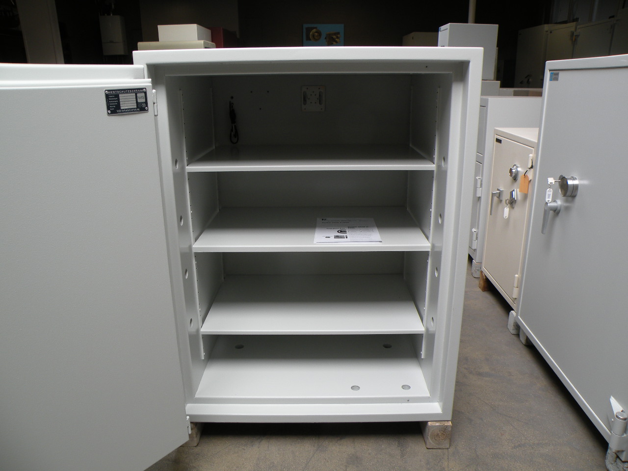 Uitgevoerd met sleutelslot inkl 2 sleutels en electronisch verstelbaar cijferslot EN 1300 klasse A.