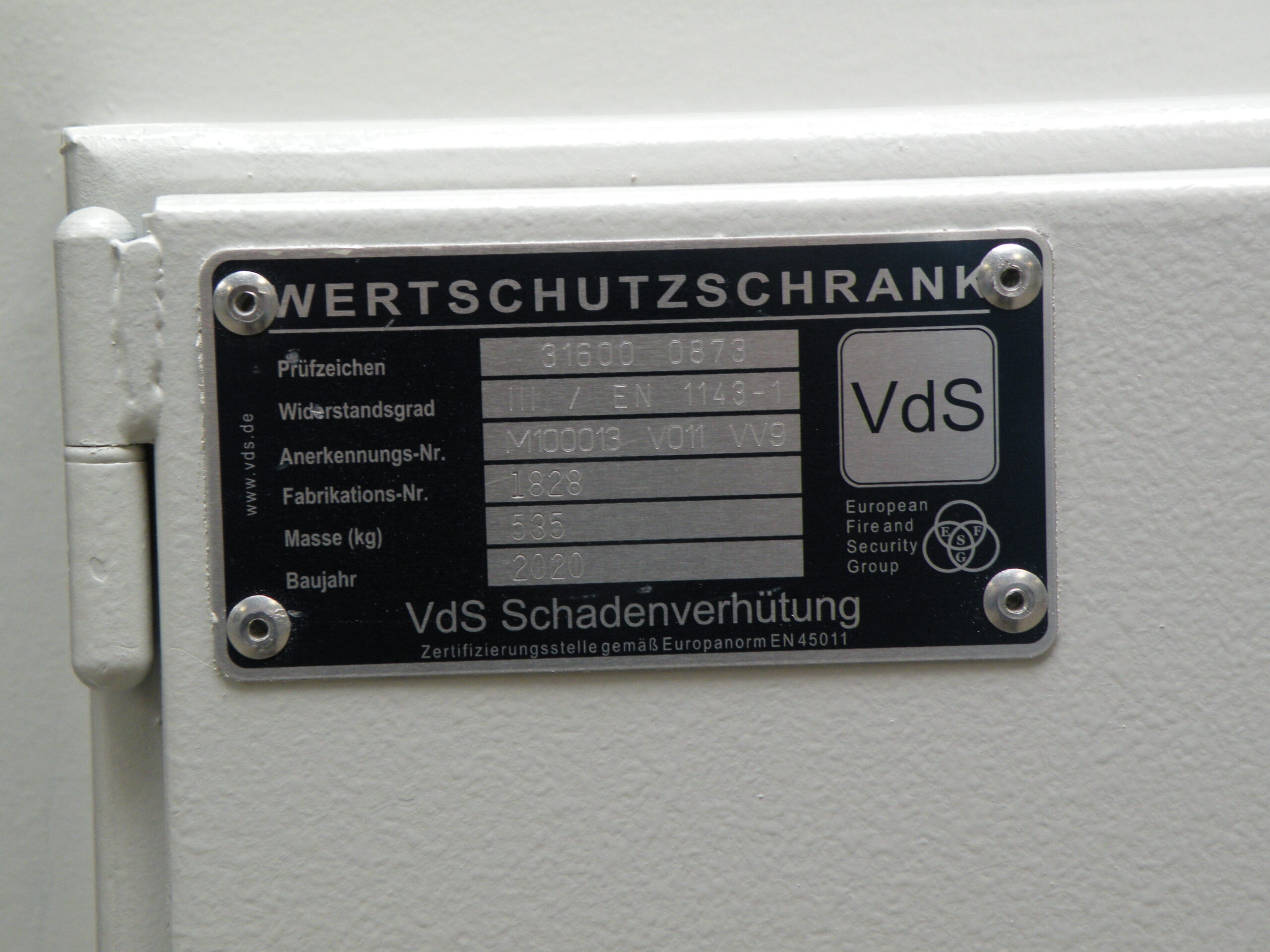 Gecertificeerde inbraakwering volgens de EN 1143-1 normering klasse 3. Dekkingsadvies verzekeraars contant geld € 45.000,00. Kostbaarheden op basis van normering € 90.000,00.