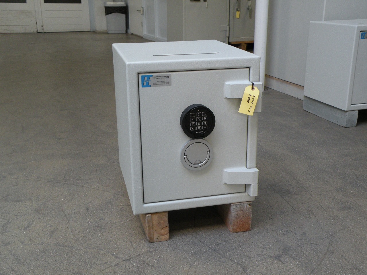 Deze verankerbare kluis is opgebouwd uit dubbelwandig plaatstaal en voorzien van een brandwerende isolatie conform de DIN 4102 normering.