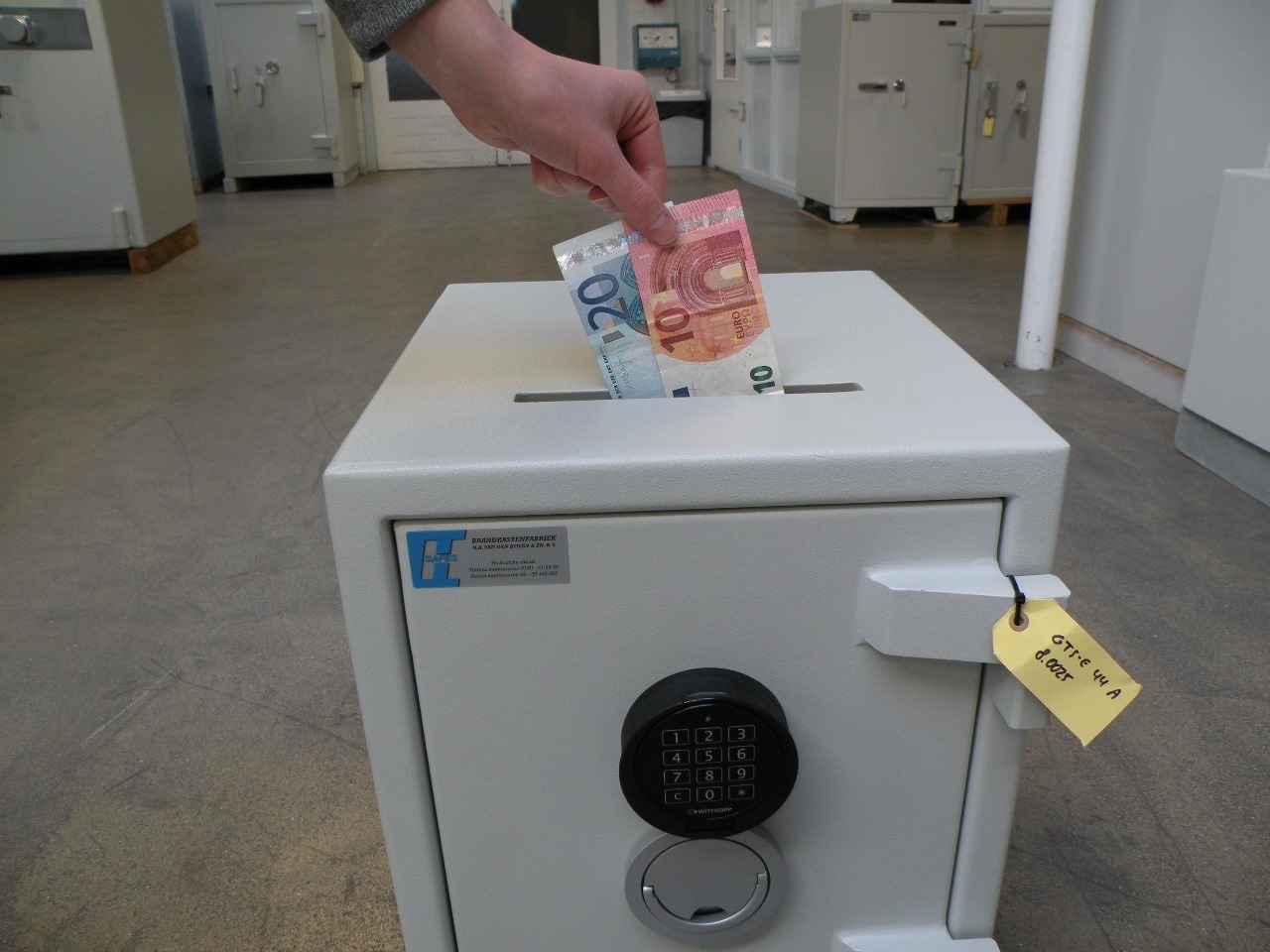 Afstortkluis van het merk van den Hoven model GTS-E 44 is voorzien van een afstortsleuf waardoor geld en documenten snel en veilig opgeborgen kunnen worden. De afstortsleuf is voorzien van antihengel beveiliging.