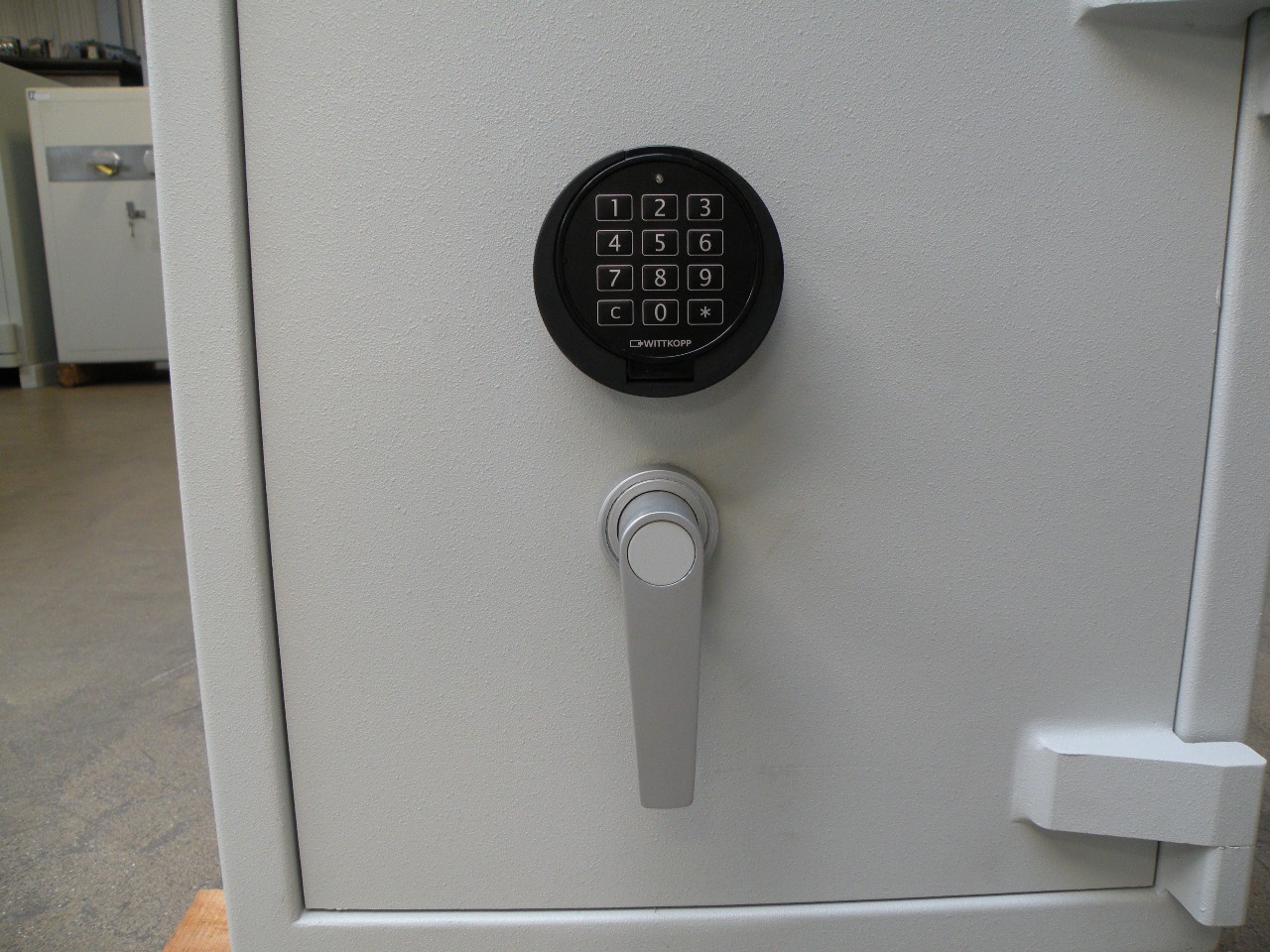 Kluis voorzien van een elektronisch verstelbaar cijferslot. EN 1300 klasse B normering.