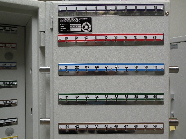 De kluis is voorzien van 200 genummerde sleutelhaken.
