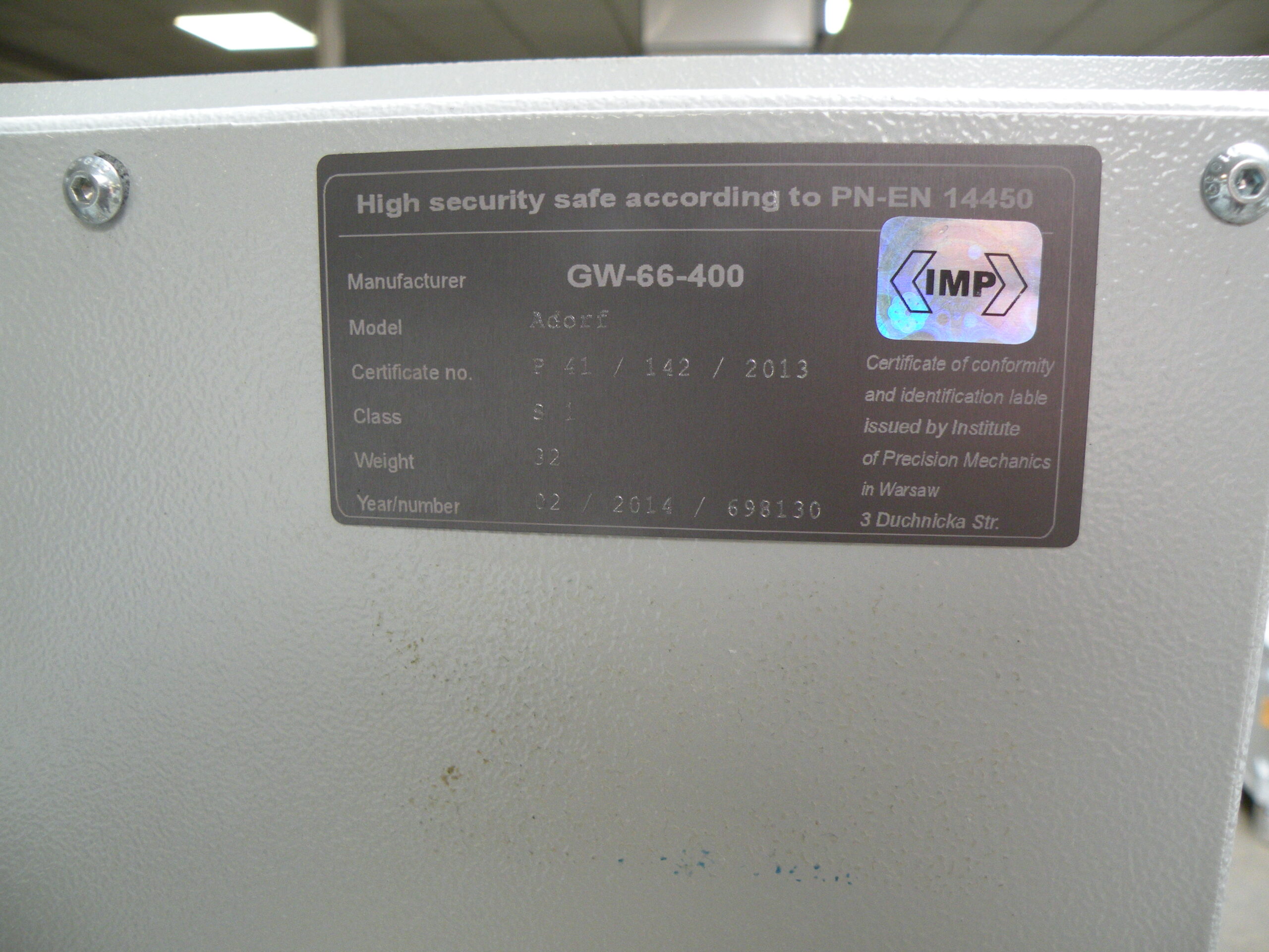 Enkelwandige kluis inbraakwerend klasse S1 EN 14450 normering. Dekkingsadvies op basis van normering contant geld € 2.500,00. Kostbaarheden verzekering op basis van normering € 5.000,00.