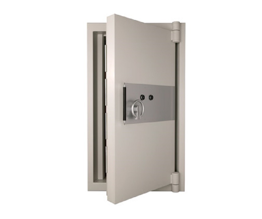 De kluisdeur is uitgevoerd met 2 stuks dubbelbaards sleutelslot incl. 2 sleutels per slot. Indien gewenst is het mogelijk de kluisdeur te voorzien van een scharnier met kabeldoorvoer zodat de kluisdeur kan worden uitgerust met detectieapparatuur en alarmeringssystemen. De deur kan zowel links- als rechtsdraaiend worden uitgevoerd.