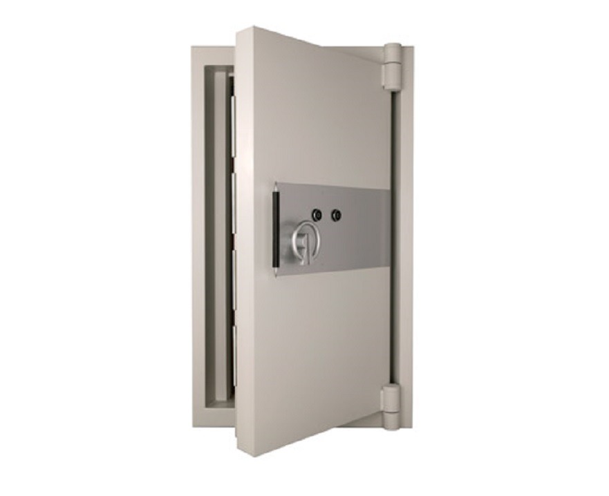 De kluisdeur is uitgevoerd met 2 stuks dubbelbaards sleutelslot incl. 2 sleutels per slot. Indien gewenst is het mogelijk de kluisdeur te voorzien van een scharnier met kabeldoorvoer zodat de kluisdeur kan worden uitgerust met detectieapparatuur en alarmeringssystemen. De deur kan zowel links- als rechtsdraaiend worden uitgevoerd.
