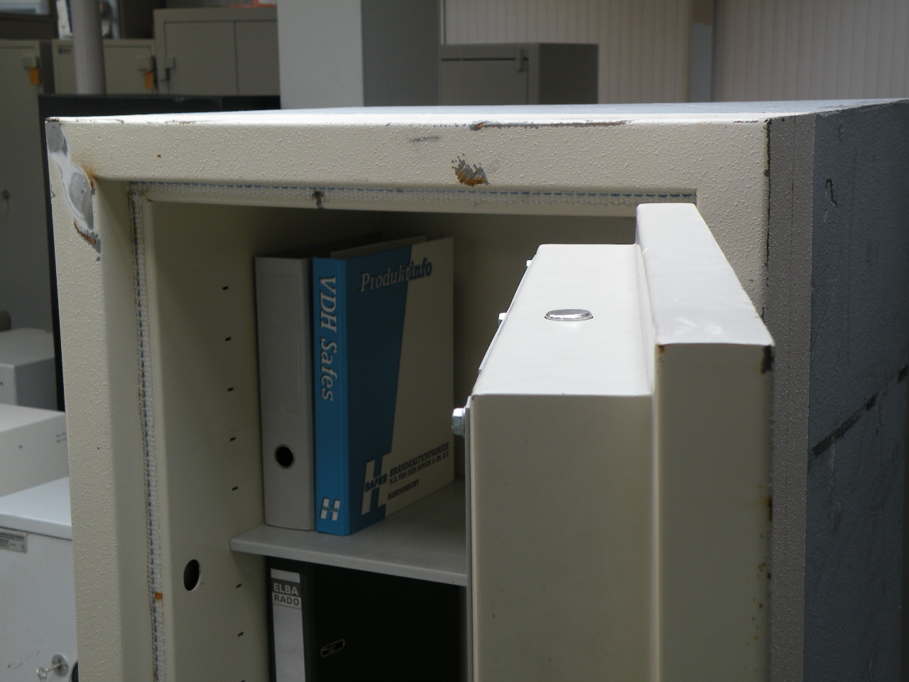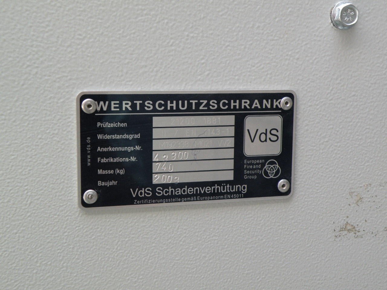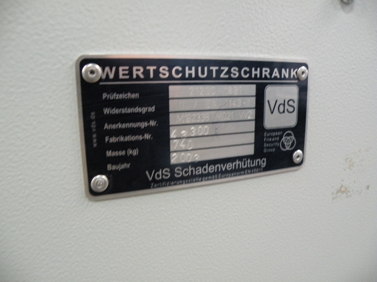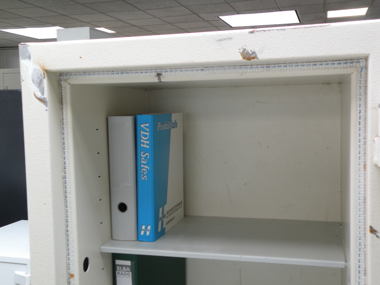 Brand- en inbraakwerende kluis van het merk MÜLLER SAFE Gnbm model EN II- 160. Gecertificeerde inbraakwering volgens de EN 1143-1 klasse 2 normering. Dekkingsadvies verzekeraars op basis van normering contant geld € 25.000,– kostbaarheden verzekering € 50.000,–. Brandwerende eigenschappen Din 4102 Normering (30 minuten) voor het veilig opbergen van contant geld, waardevolle voorwerpen en of documenten. Deze gecertificeerde kluis is voorzien van een sleutelslot inkl 2 sleutels EN 1300 klasse A, 3 stuks verstelbare legborden. De kluis heeft aan de buitenzijde veel lakbeschadiging. Indien gewenst kan de kluis opnieuw van binnen en buiten worden gespoten in een lichtgrijze lak. Levering met 1 jaar garantie. Indien gewenst is het mogelijk om de kluis bij plaatsing door Van den Hoven te laten verankeren aan de vloer d.m.v. 1 stuks chemisch anker.