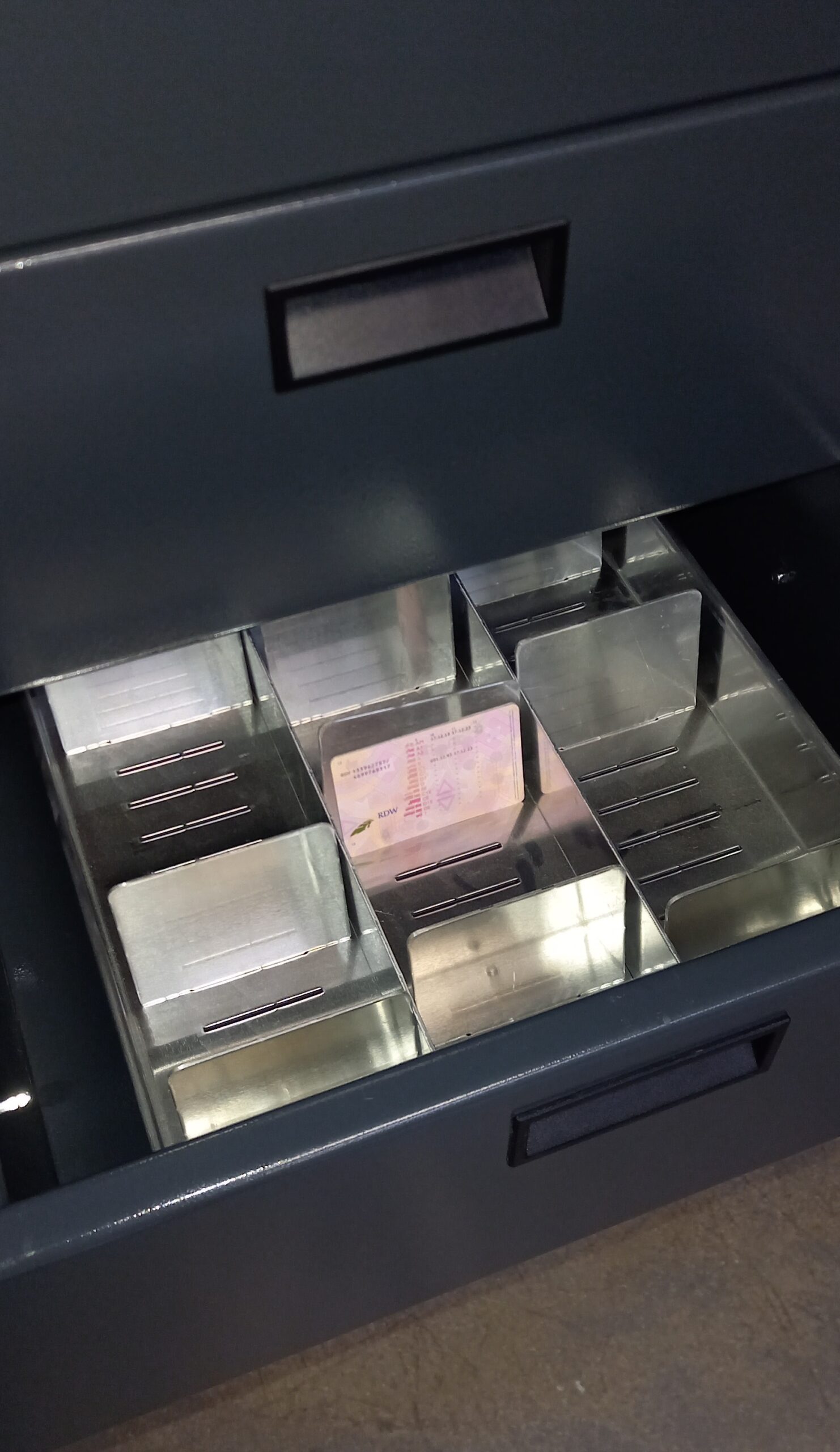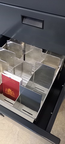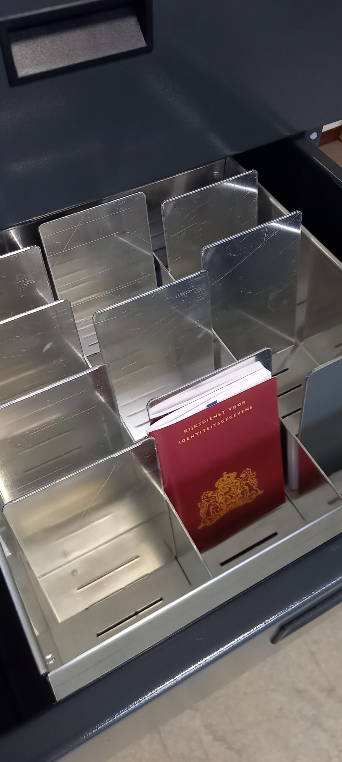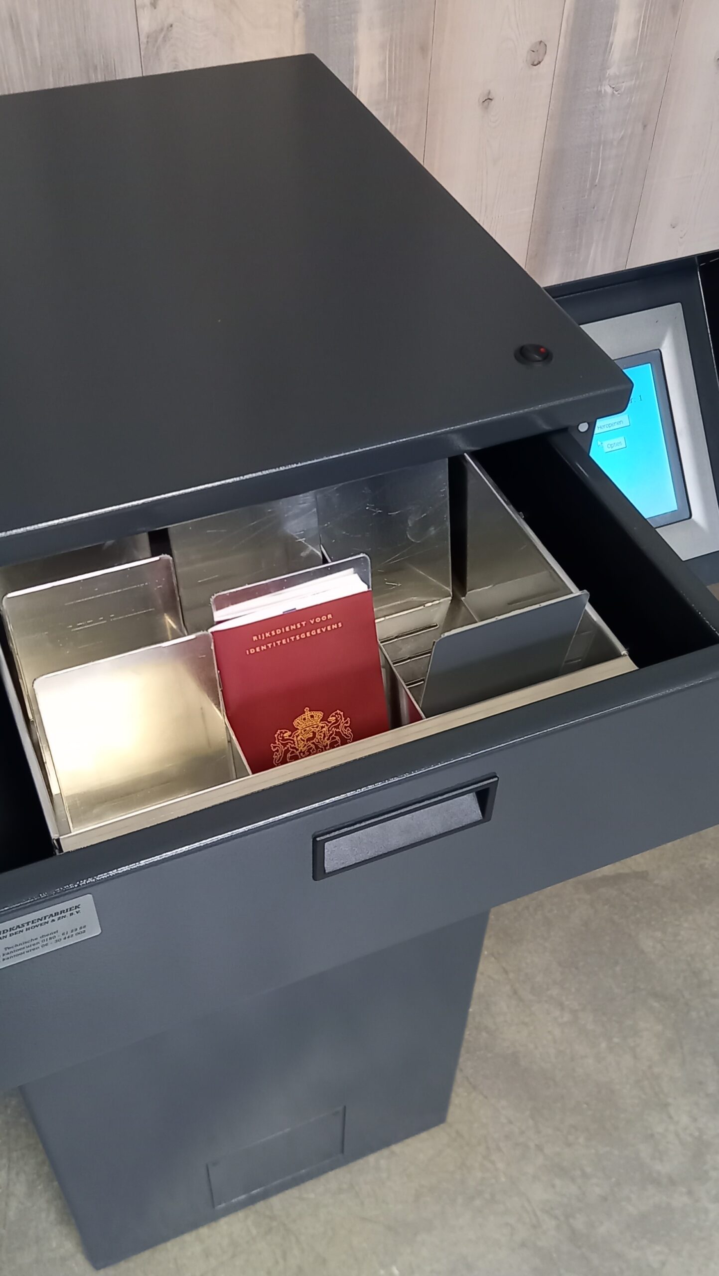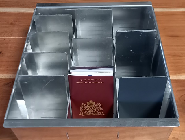 Door de handige uitneembare bakken worden de paspoorten/rijbewijzen ’s ochtends en aan het eind van de werkdag efficiënt in en uit de Paspoortbox geplaatst.