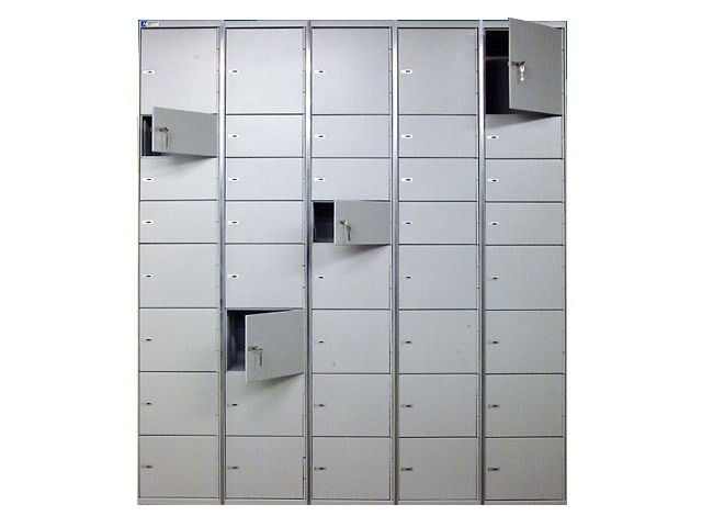 De loketdeurtjes zijn van 8mm massief staal en zijn voorzien van een robuust scharnier. De units kunnen onbeperkt geschakeld worden naar gelang de benodigde capaciteit. De units worden tegen de muur en aan elkaar verankerd.