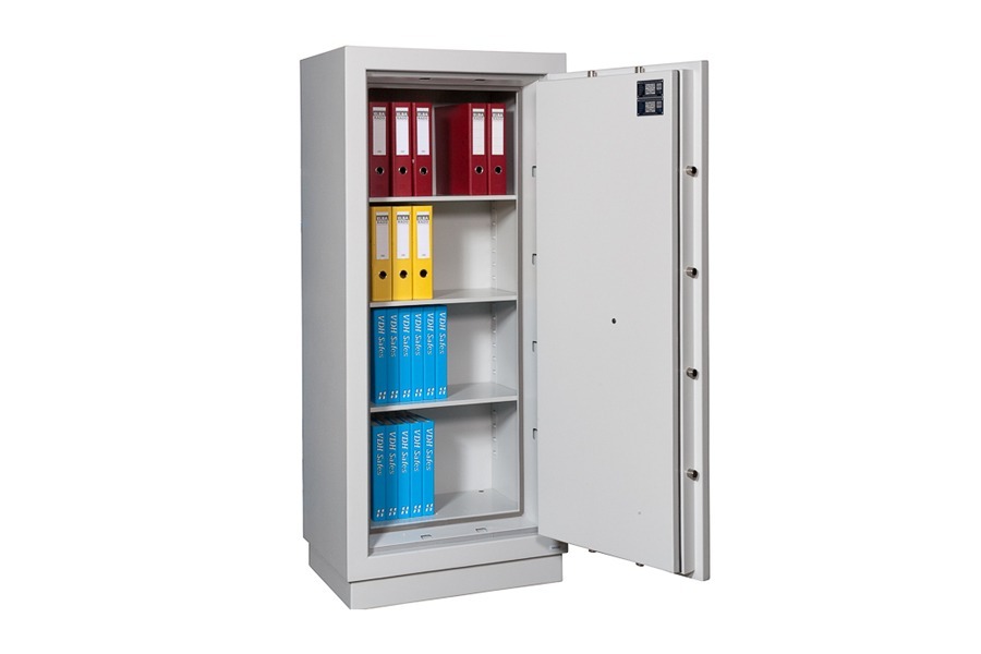 De inbraakwering van de safe is getest en gecertificeerd conform de Europese normering NEN-EN 1143-1 / CEN I. De safe is uitgevoerd met een dubbelbaards sleutelslot klasse 1. De modellen 6-2, 7-2 en 8-2 zijn dubbeldeurs uitvoeringen.