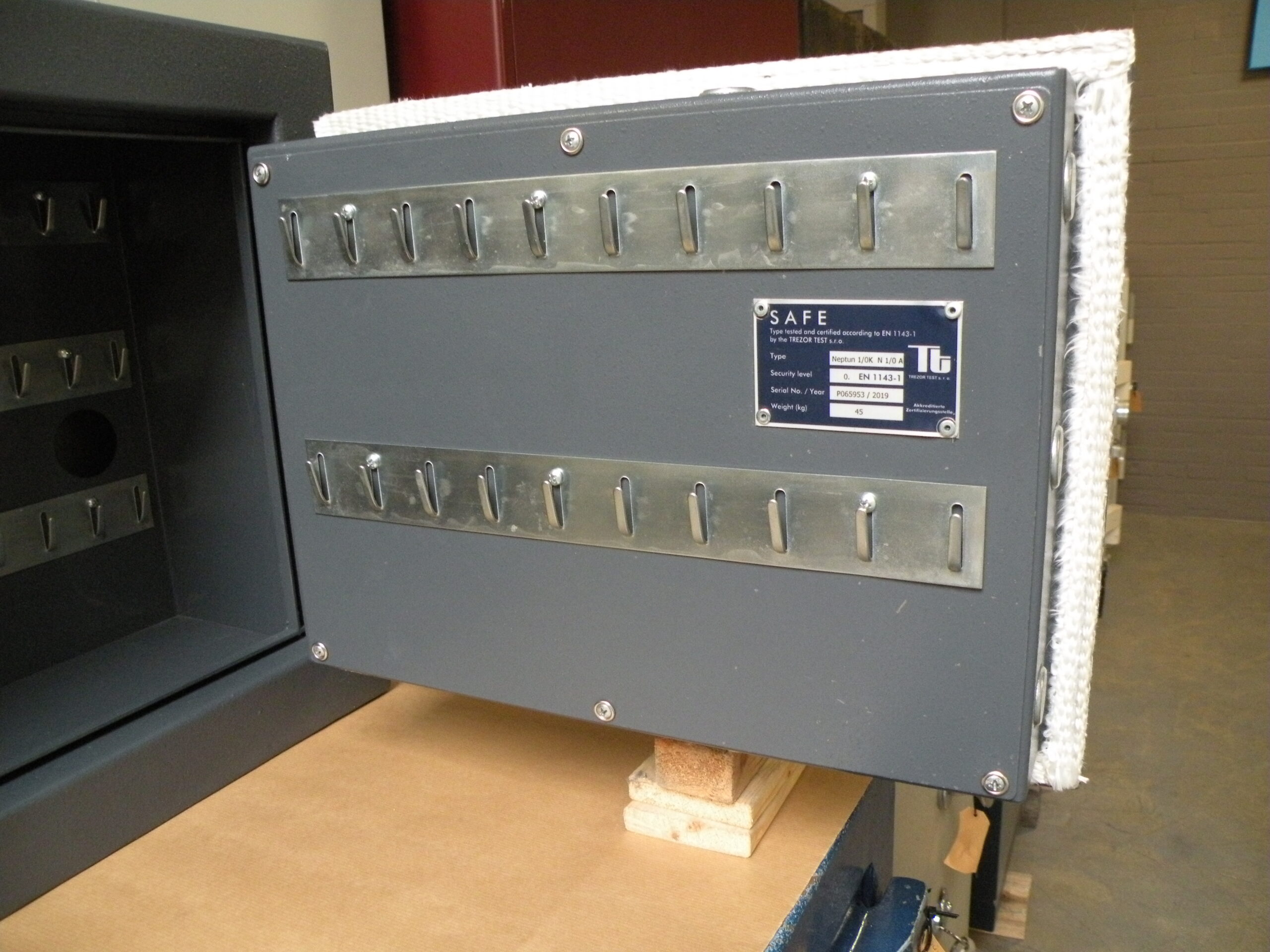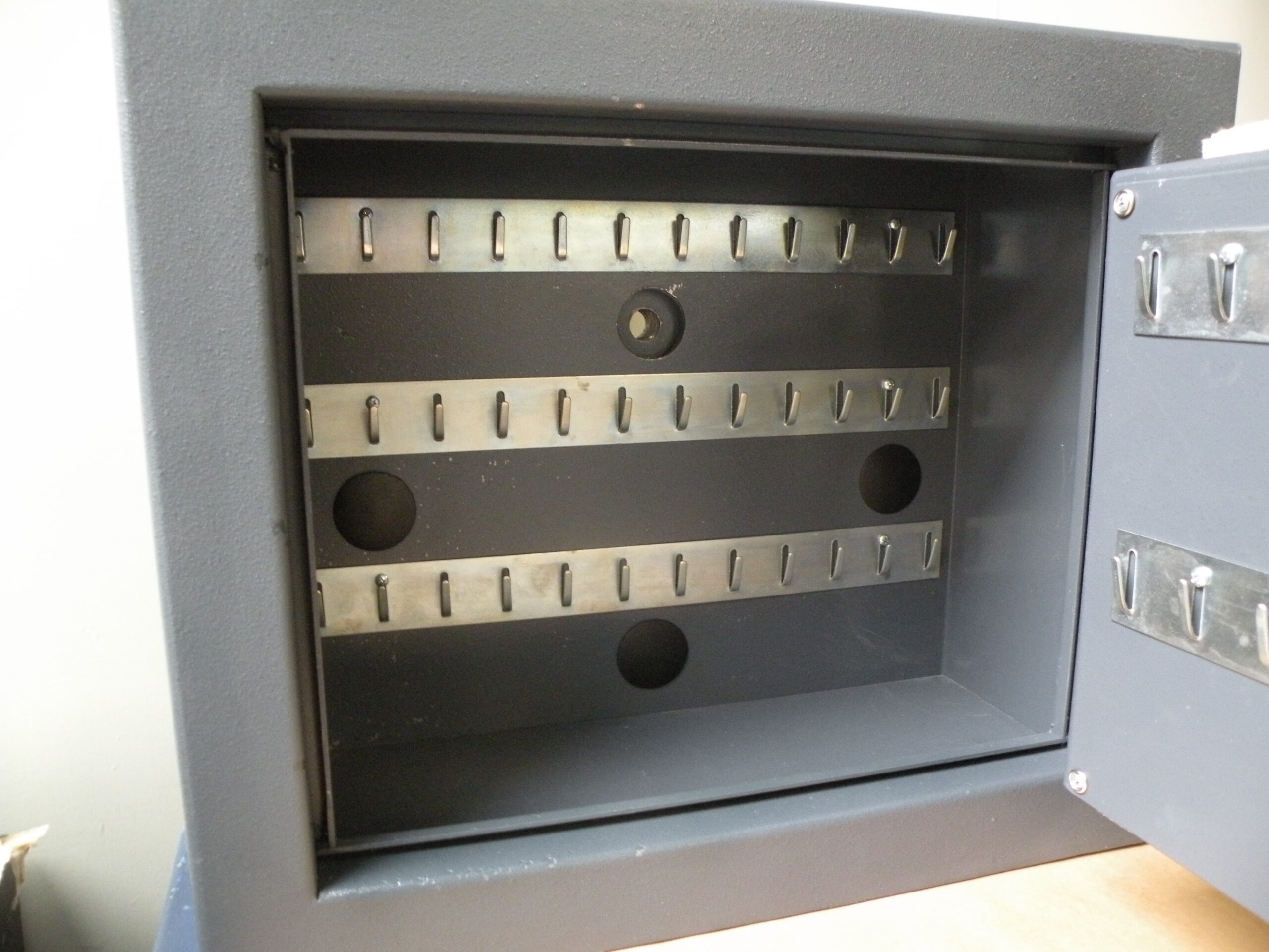 Voorzien van een elektronisch cijferslot EN 1300 klasse B en 56 sleutelhaken ( geen nummering).