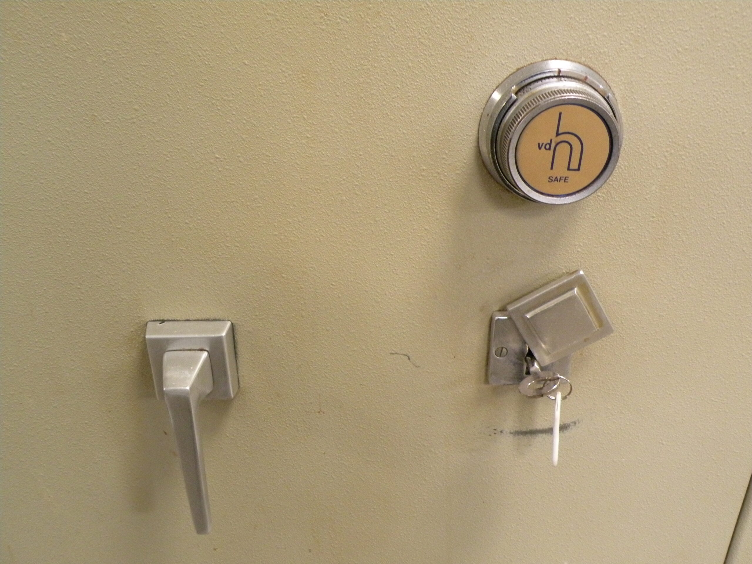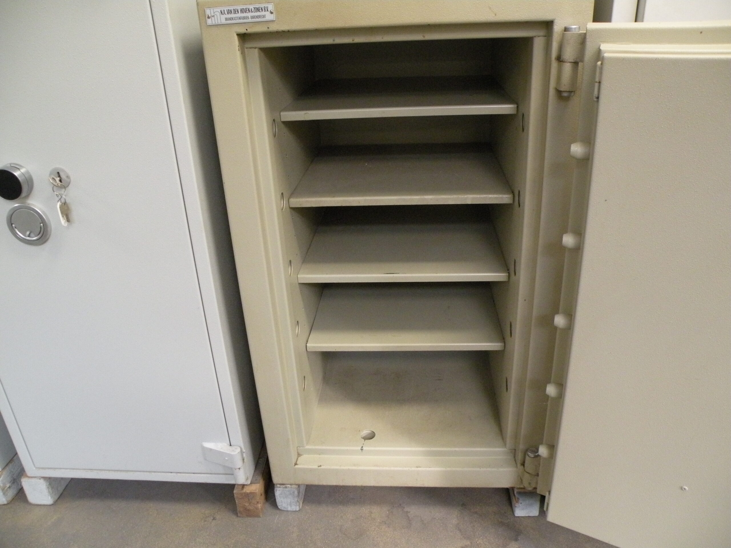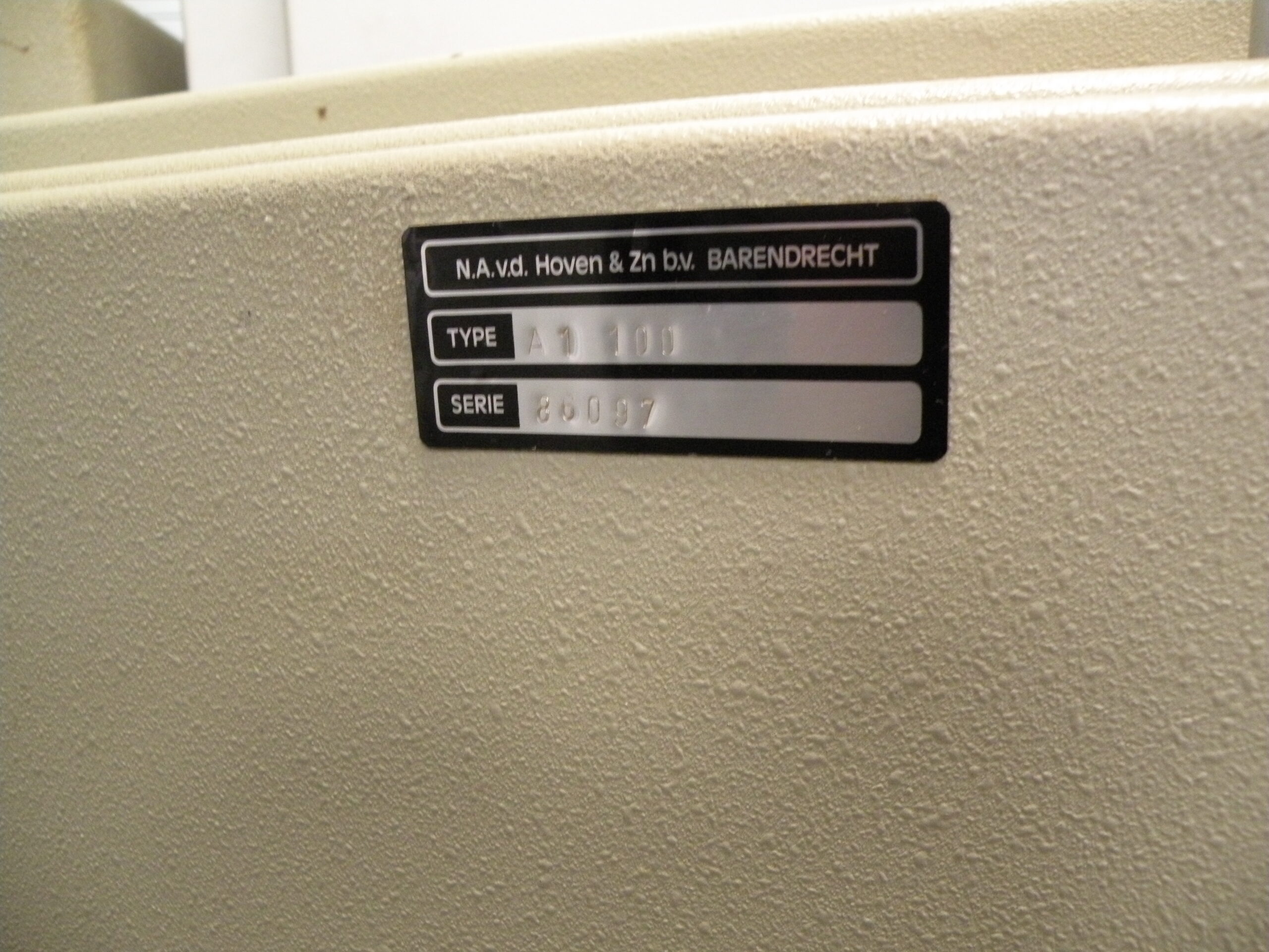 Gebruikte van den Hoven kluis model V2DS A1 100. Brand en inbraakwerende kluis, voorzien van een sleutelslot incl. 2 sleutels en mechanisch verstelbaar cijferslot. Als optie leverbaar elektronisch cijferslot i.p.v. het mechanische cijferslot. 4 stuks verstelbare legborden.