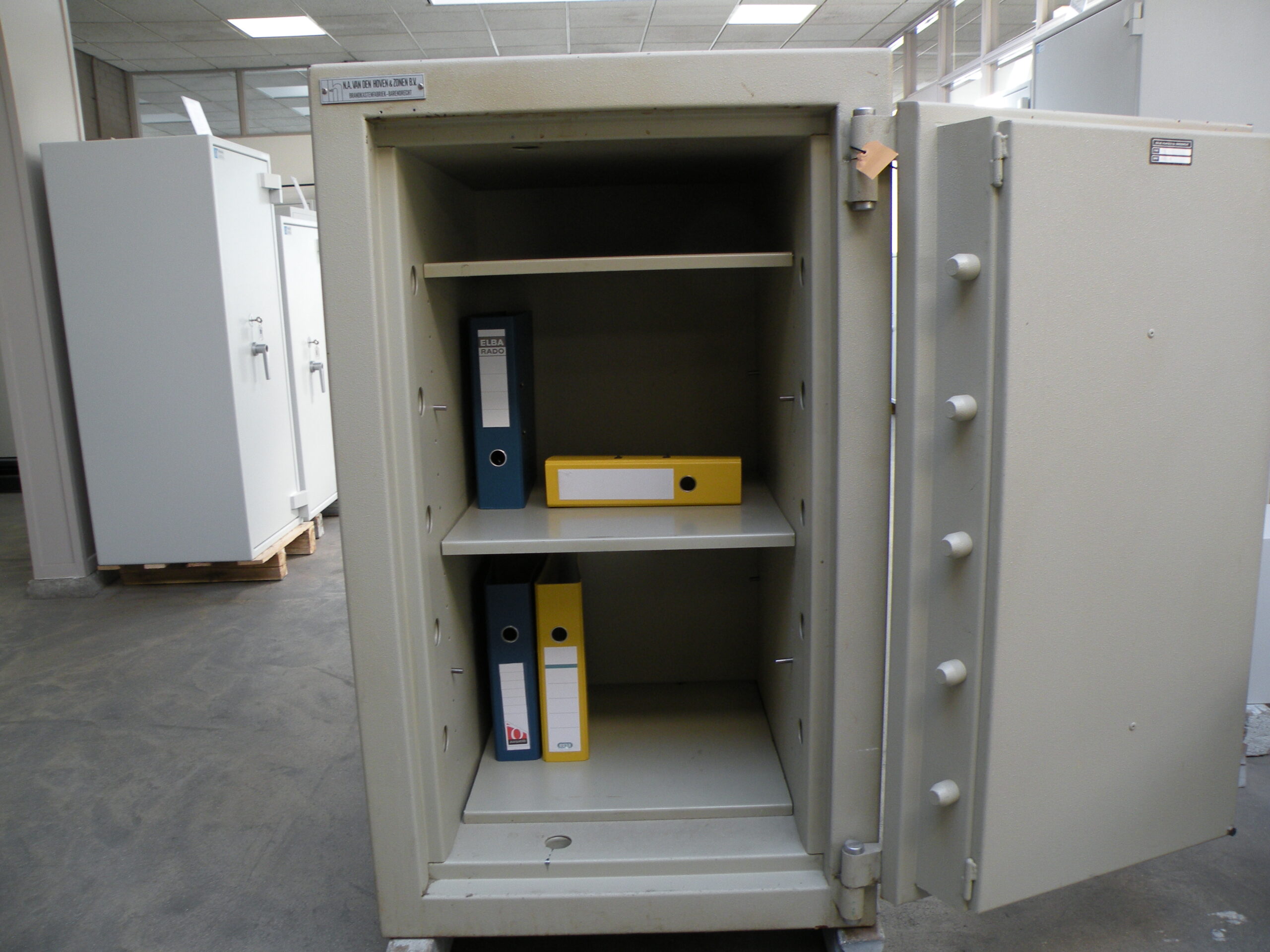 Gebruikte van den Hoven kluis model V2DS A1 100. Brand en inbraakwerende kluis, voorzien van een sleutelslot incl. 2 sleutels en mechanisch verstelbaar cijferslot. Als optie leverbaar elektronisch cijferslot i.p.v…..