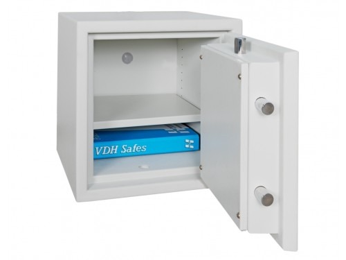De VDH-1-E is uitgevoerd met een klasse B gecertificeerd elektronisch cijferslot met mangaanstalen slot bepantsering. Tevens is de deur voorzien van roterende deurschoten van ø 25 mm. massief staal die in combinatie met het vierzijdig sluitmechanisme een sublieme afdichting garanderen.