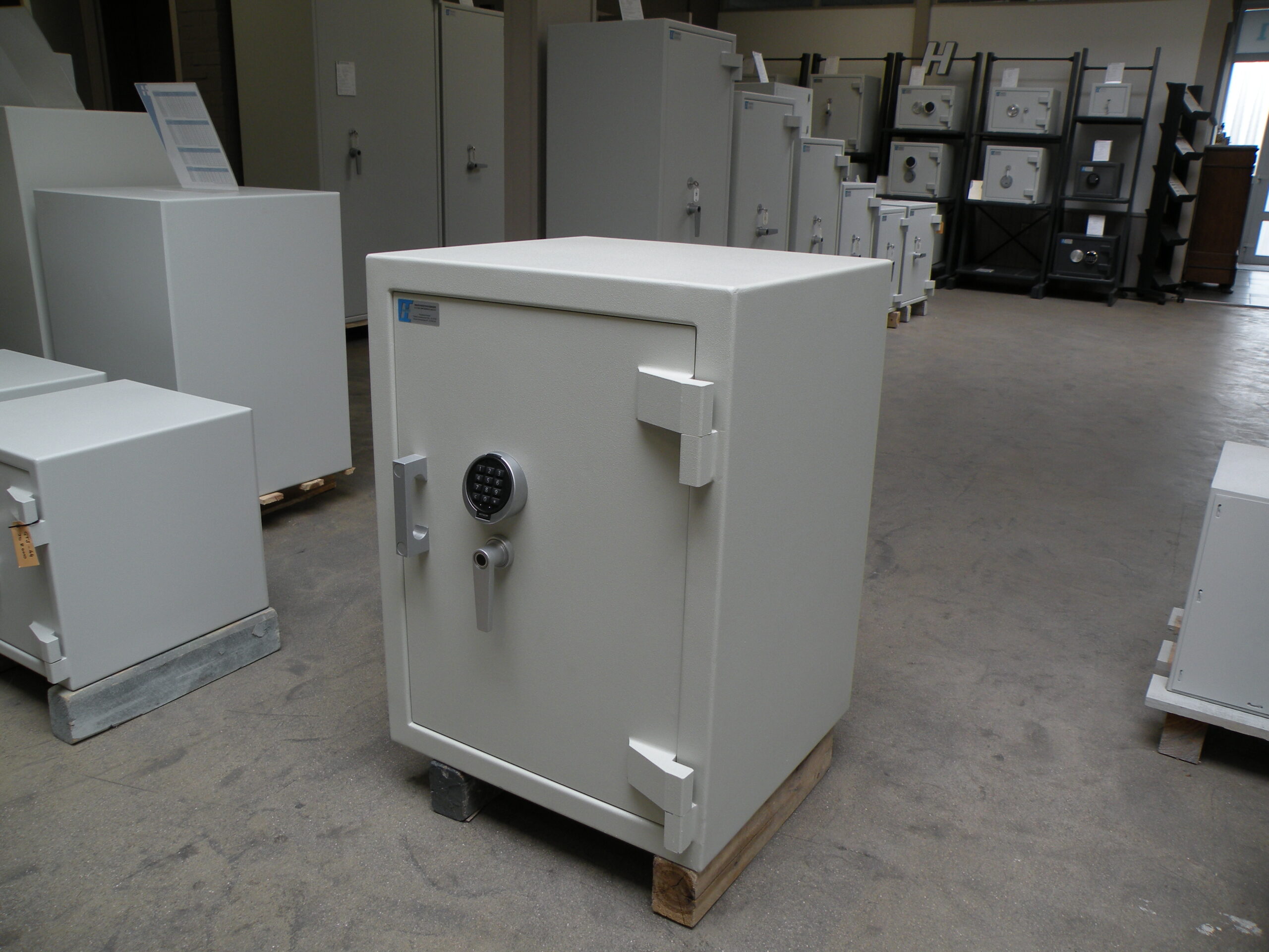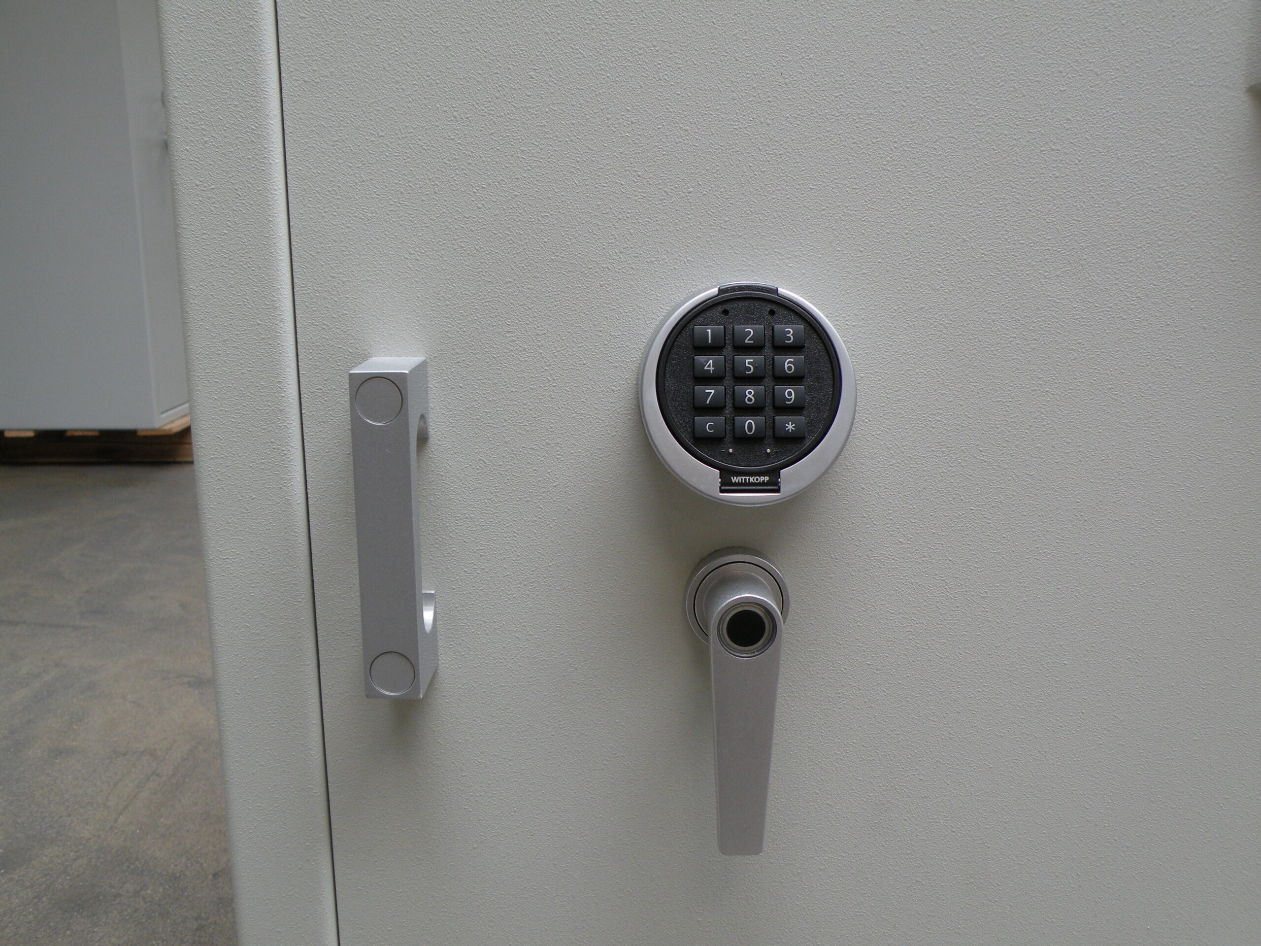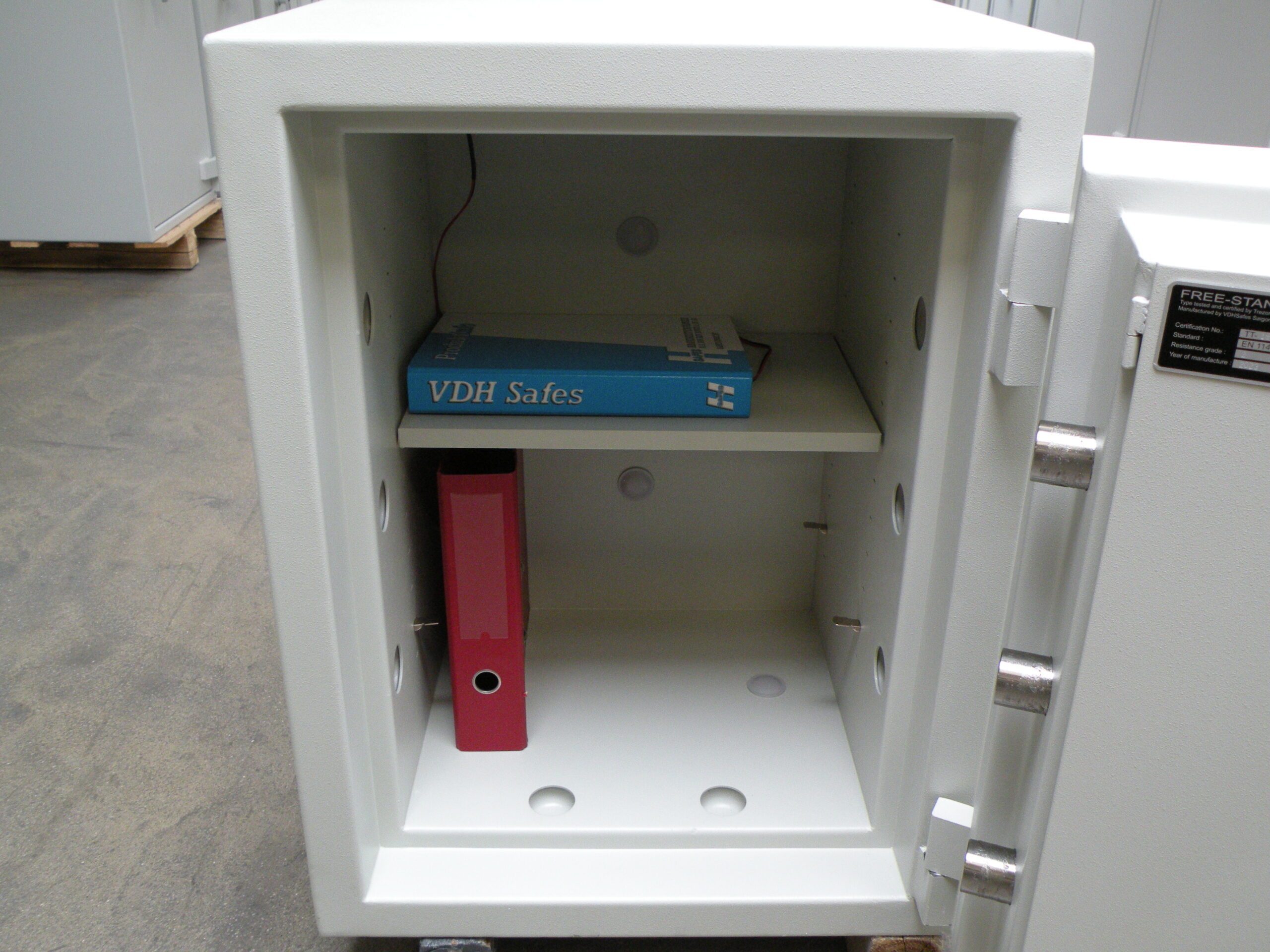 Uitgevoerd met electronisch verstelbaar cijferslot EN 1300 klasse B en 2 stuks verstelbare legborden.