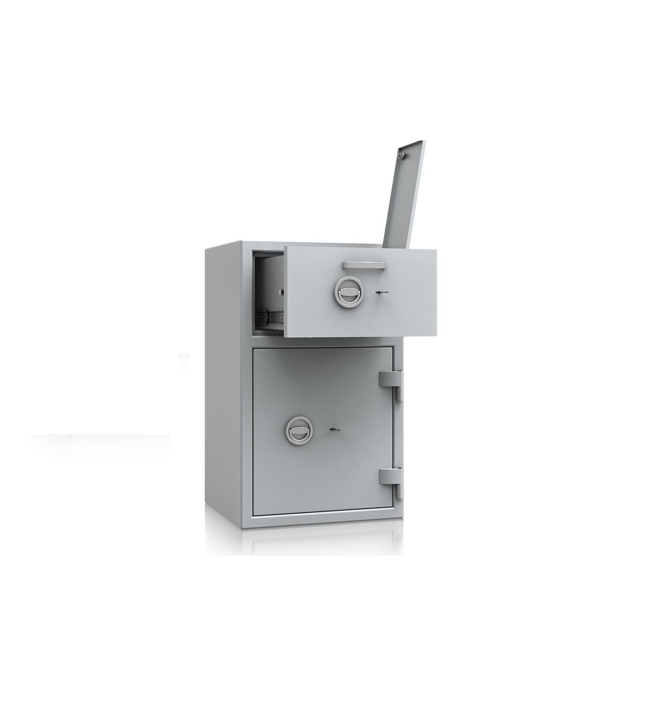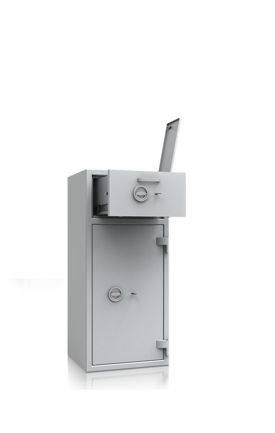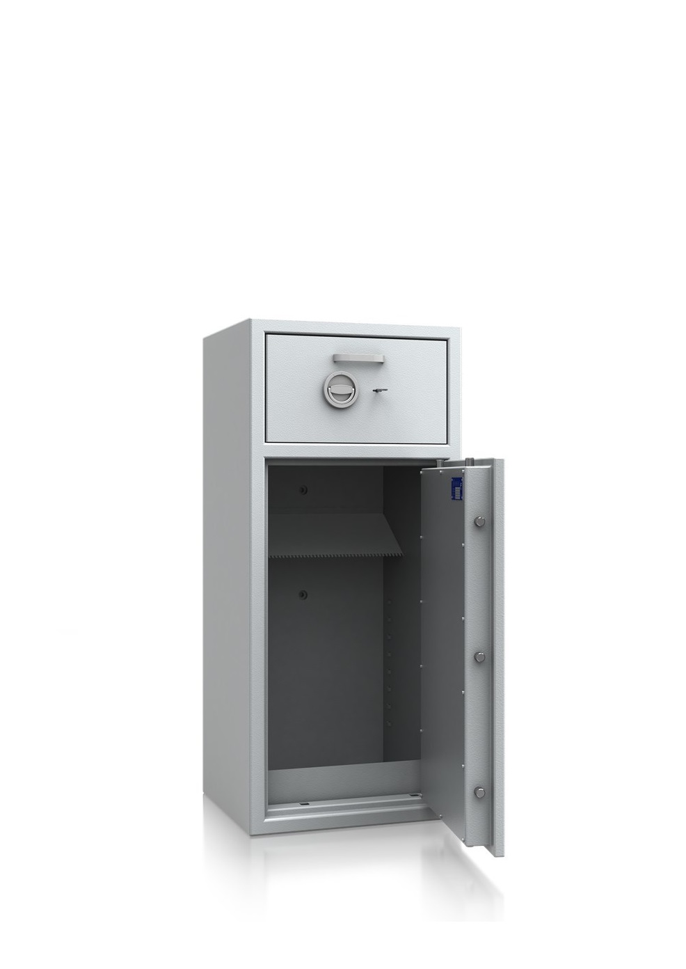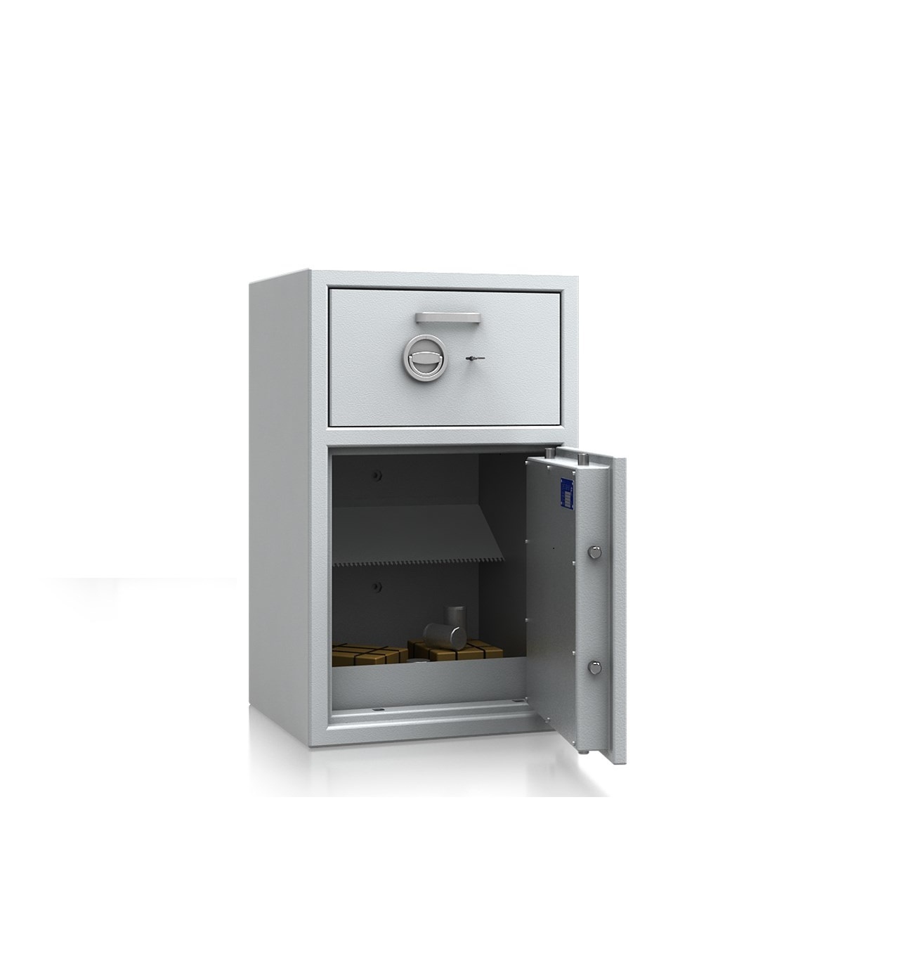 – Standaard voorzien van een dubbelbaardsleutelslot op de kluisdeur en een dubbelbaardsleutelslot op de lade.